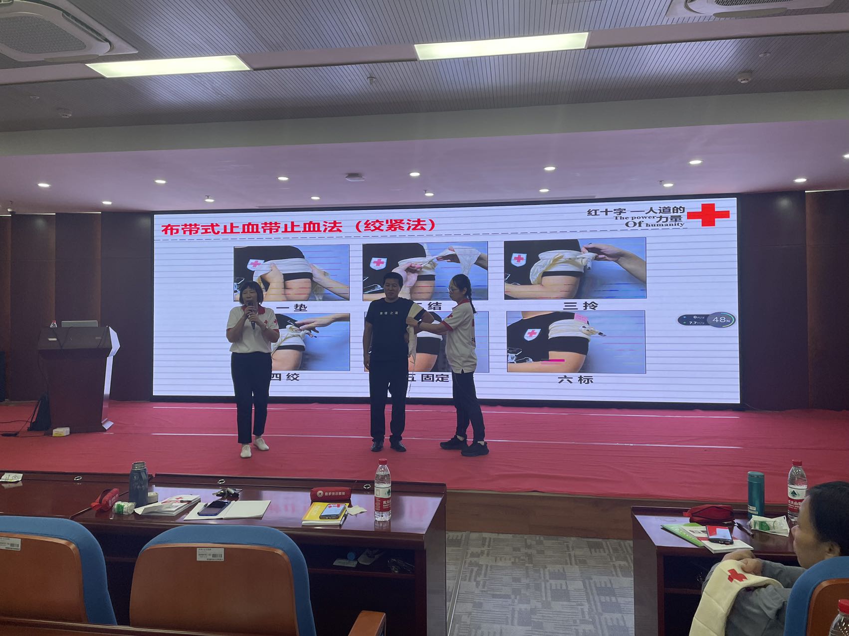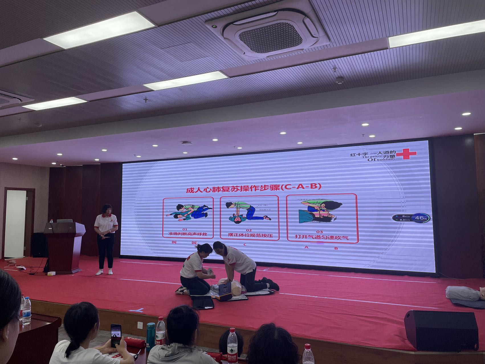 本次培训采取“理论+实操+考核”的方式进行,课堂上,市红十字会资深讲师孙红蕾及滨湖区红十字会讲师团队唐镇棣等老师向学员讲述了红十字运动基本知识,并结合真实的案例,用生动、形象的语言对救护概念、心肺复苏(CPR)、自动体外除颤器(AED)、气道异物梗阻等进行了系统讲解,让大家对应急救护知识有了基本的了解。眼看千遍不如手过一遍,为了巩固大家的理论知识,实操课堂上,老师们借助人体模型,带领参训学员切身体会实践操作技能,针对学员练习中的操作、动作不规范等情况,老师们手把手指导,确保大家每一个动作规范、准确、到位。最后,各位学员进行了“理论+实操”的考核,考核合格的学员收获了红十字会救护培训证书。