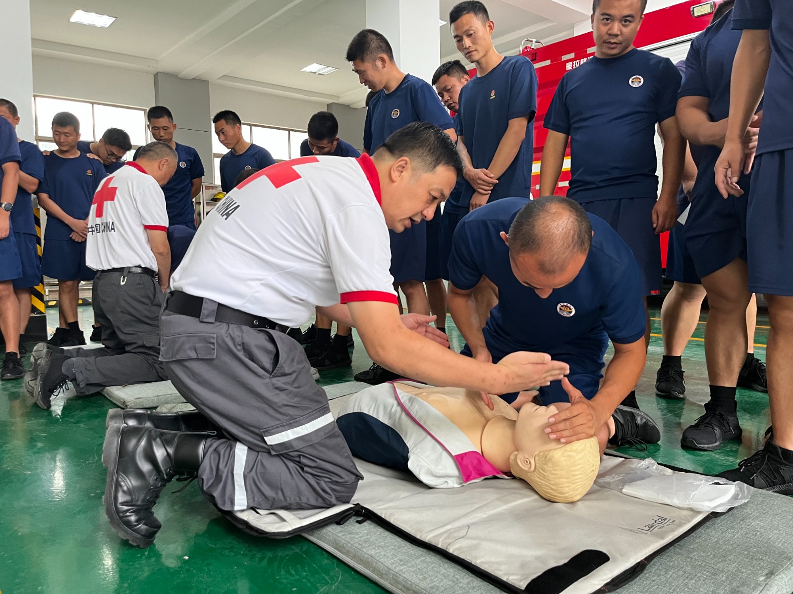 培训老师向学员们讲解各种意外事故的应急处理规程,通过理论授课、实际操作、模拟指导和逐一考核四个板块开展授课培训。重点讲解并演示徒手心肺复苏术、外伤止血包扎、固定搬运等常用急救措施,以帮助指战员在第一时间内应对突发状况,为挽救人员生命争取时间和机会。参训学员们专心听、认真记,实操训练环节,大家积极模拟、反复练习,力求熟悉每一个步骤、每一个要点,高水平掌握技术要领。