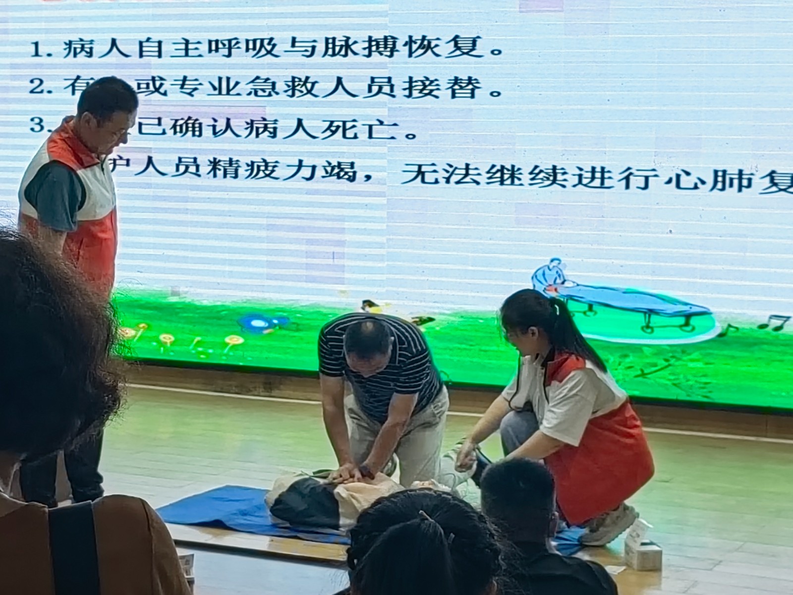 培训现场,授课老师充分结合教育系统工作的实际需求,将应急救护理论与现场实际操作相结合,重点讲解了心肺复苏、AED使用、海姆立克急救法、以及溺水、中暑、踩踏等意外伤害事故的处理方法。