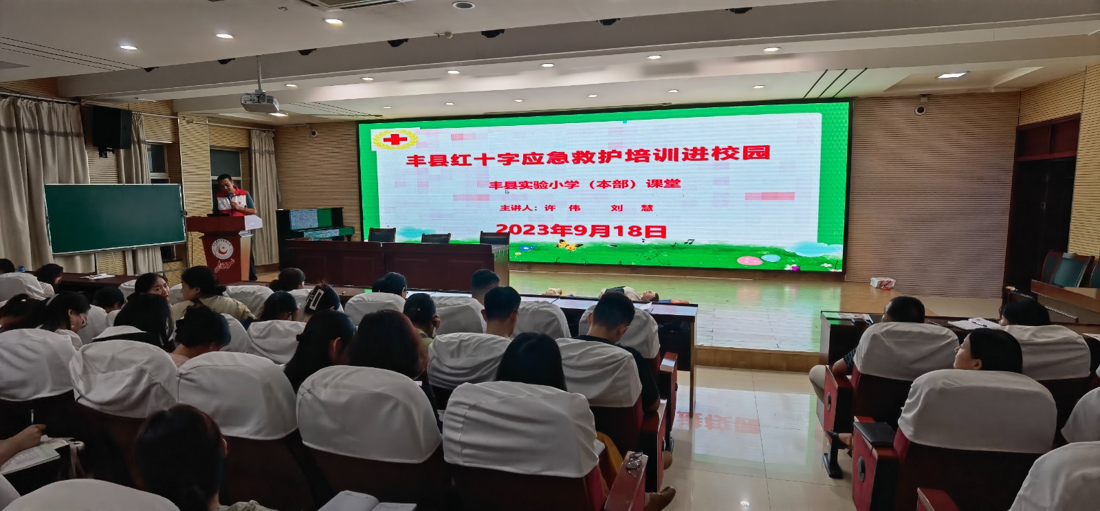 9月19日,县红十字应急救护师资应邀来到丰县实验小学为100余名教师开展了一期应急救护知识培训班。