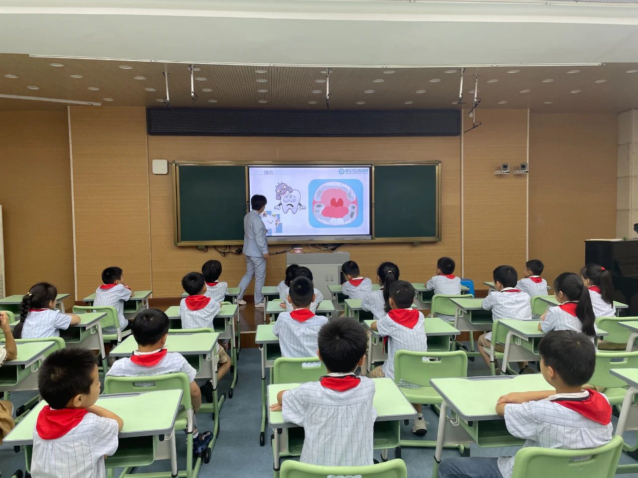 镇江市口腔医院走进校园开展了一系列“牙牙小课堂”的健康宣教活动,通过寓教于乐的公益宣教及沉浸式体验,引导幼儿增强口腔保健意识,深刻认识口腔卫生保健的重要性。通过牙齿模型向孩子们展示了正确的刷牙方式,并让孩子们轮流用牙齿模具和牙刷,学习、练习正确的刷牙方式。
