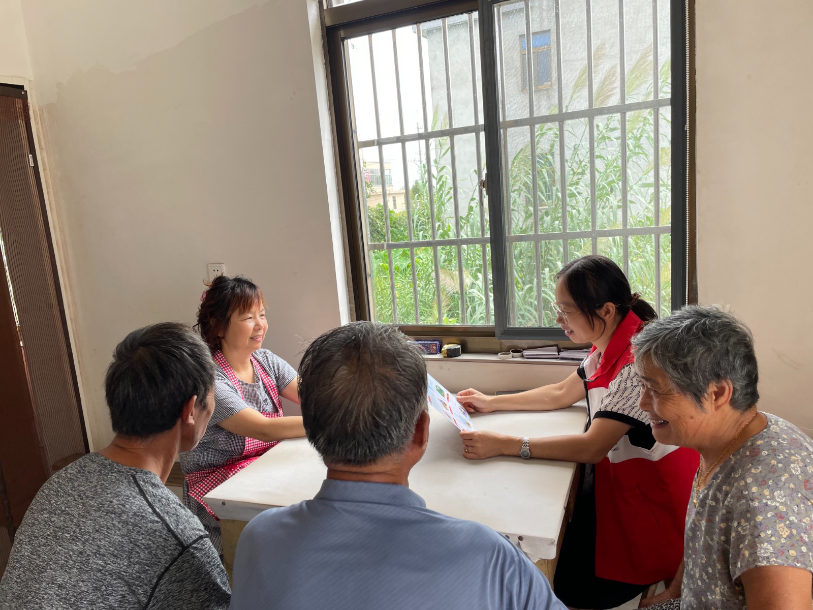 海界村博爱家园组织志愿者入户发放移风易俗宣传册。志愿者向村民群众们介绍“婚事新办”“丧事简办”“文明过节”“崇德向善”“树立新风”等移风易俗的相关内容。以通俗易懂的方式,引导群众破陈规、除陋习、传文明、树新风,以实际行动争做移风易俗的先行者、示范者。