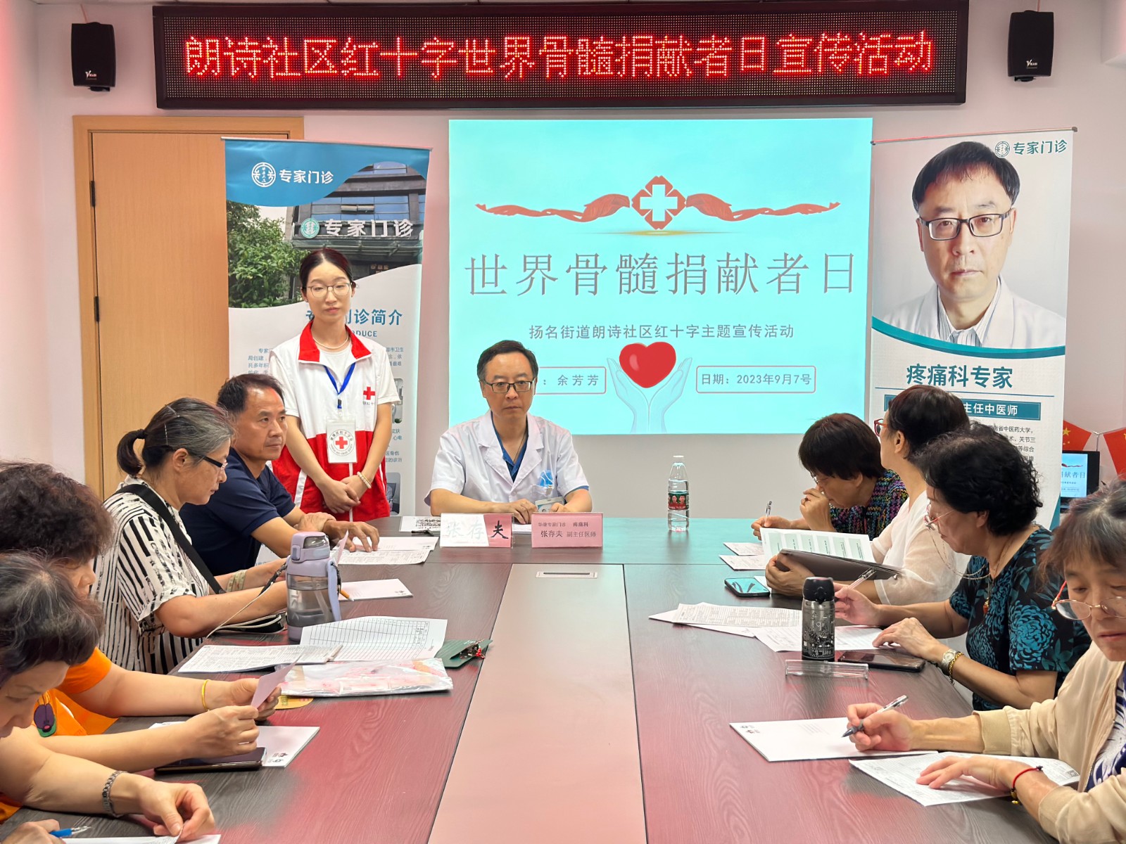 为持续提升公众对造血干细胞捐献的知晓率、参与度,呼吁更多公众加入到捐献造血干细胞队伍中来, 9月14号下午,扬名街道朗诗社区红十字会邀请红十字志愿者、无锡华康医院张存夫副主任医师来到社区为居民讲解造血干细胞捐献相关知识,旨在提高辖区居民对造血干细胞捐献的认识和理解。