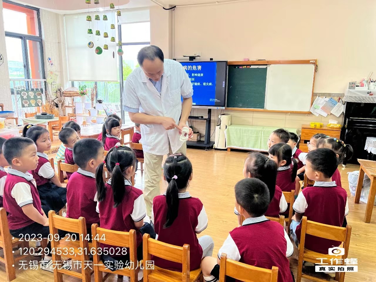 在天一实验幼儿园,口腔科陈荣华主任给小朋友们进行了《儿童口腔卫生保健》健康知识讲座,讲述了如何保护牙齿,利用牙齿模型和牙刷为孩子们演示正确的刷牙方法,让他们明白“三、三、三”刷牙要点,并用卡通图片让小朋友们了解龋齿的危害和预防方法,了解早晚刷牙、饭后漱口等良好口腔卫生习惯的重要性。讲座结束后,陈主任还为孩子们检查了口腔,给予专业的指导。整场活动,医生讲得深情并茂,孩子们听得炯炯有神,通过互问互答的方式,让孩子们更深刻地了解爱牙知识,逐渐提高幼儿的护牙意识,同时对幼儿今后养成良好的生活习惯也有着重要影响,希望每个孩子都成为护牙小卫士,绽放他们健康、美丽的笑容!