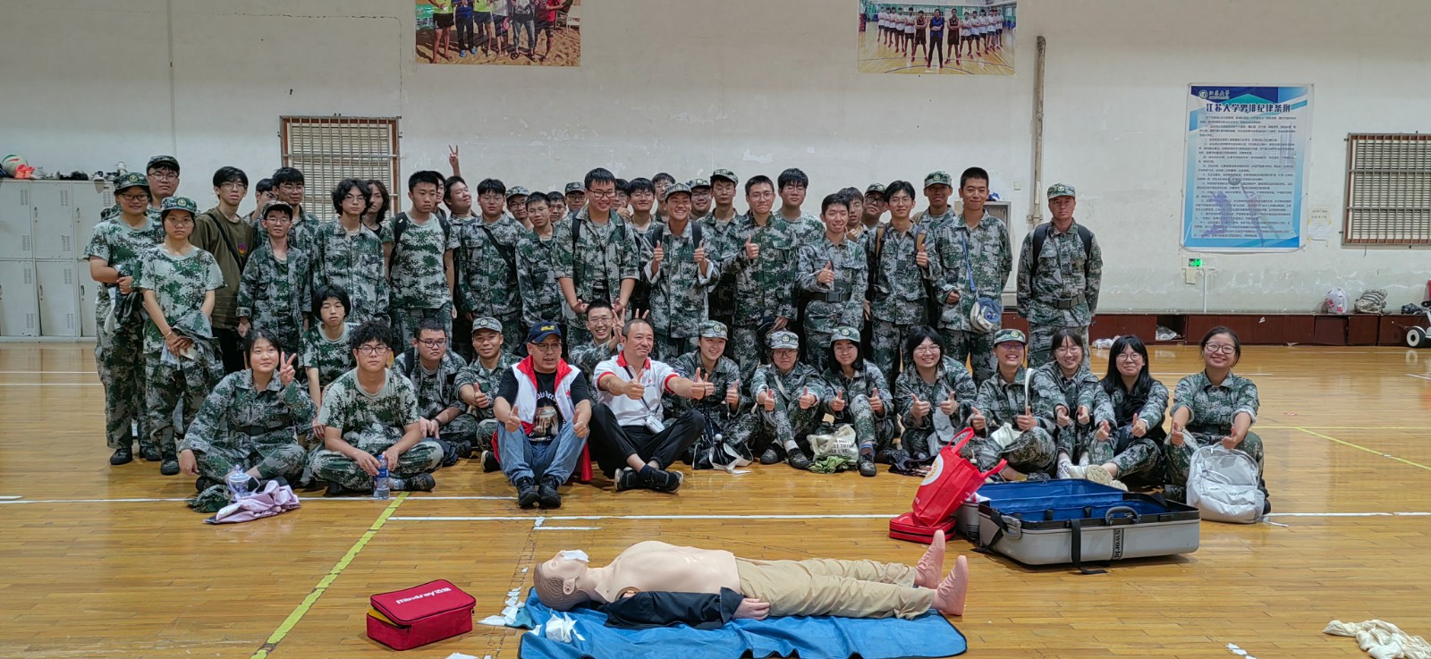 今年江苏大学把安全教育纳入到23级新生军训中来,各部门全力配合。针对本次救护培训学校安排近30名校急救协会的志愿者协助。