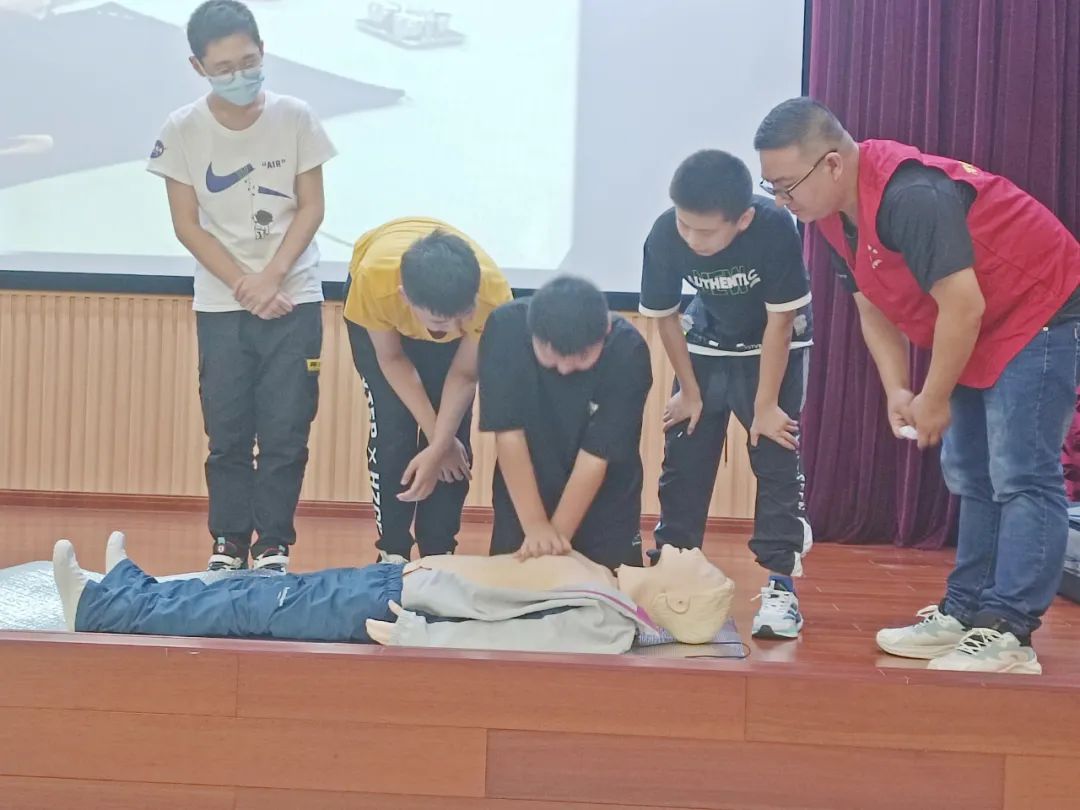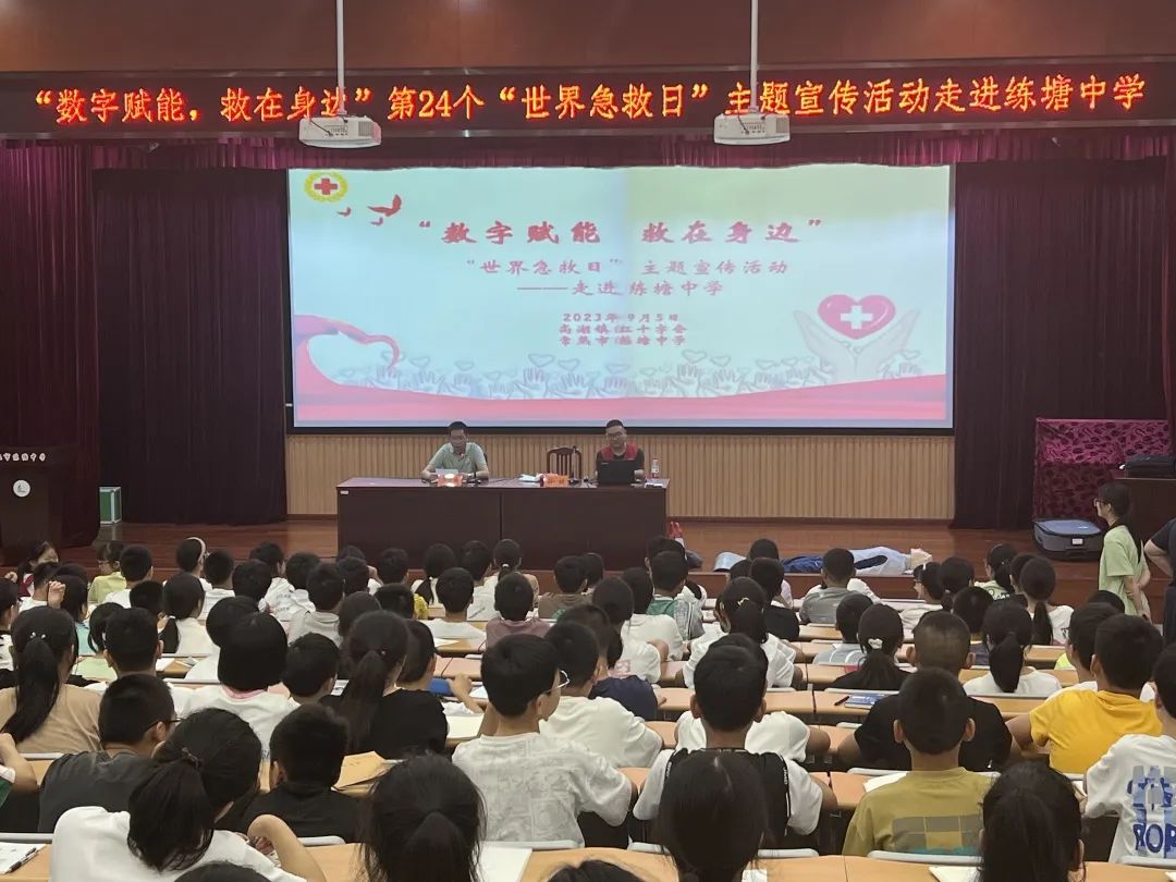 9月5日,“世界急救日”主题宣传活动走进练塘中学。红十字志愿者为学生们教授了心肺复苏、海姆立克急救法等救护技能。活动中孩子们听得津津有味,并踊跃上台参与实操练习。