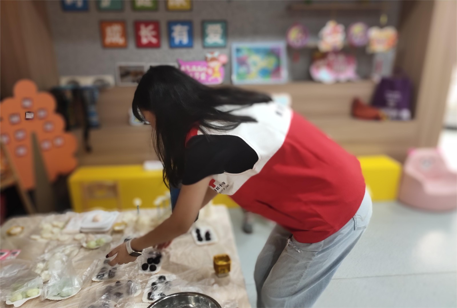 活动开始前,红十字志愿者们精心地为大家准备好冰皮、馅料、模具、手套等材料。随着孩子们的到来,活动现场热闹起来。包老师为大家详细讲解并演示了冰皮月饼的制作方法。话音刚落,参加活动的家长和孩子们跃跃欲试,纷纷按照流程,滚圆、压模、脱模,孩子们大展身手,忙得不亦乐乎。在一双双巧手的揉捏下,一个个晶莹剔透的冰皮月饼诞生了,大家都十分兴奋和满足。孩子们小心翼翼地将亲手制作的月饼放入包装袋中封装好,准备将这份小甜蜜分享给自己的家人。