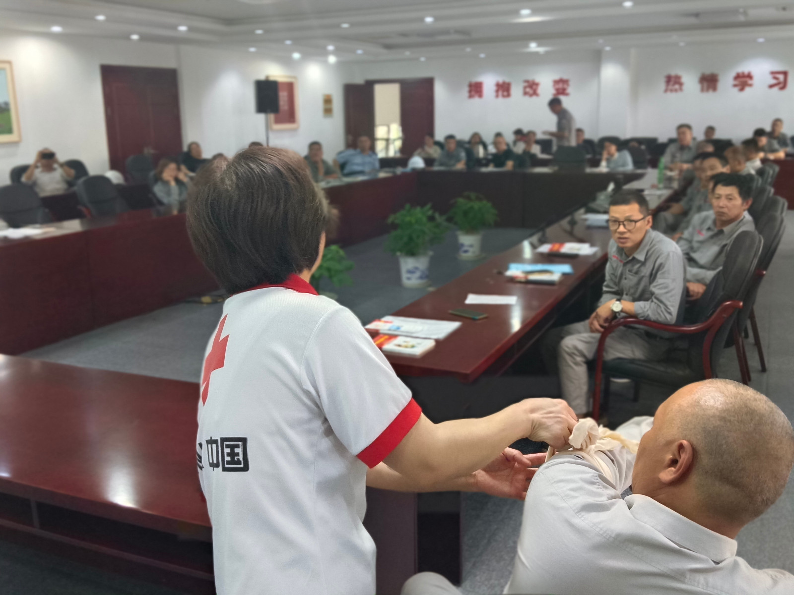 心跳呼吸骤停要怎么抢救?受到外伤导致骨折怎么办?被异物卡住喉咙要怎么处理?为帮助更多工作在一线的劳动人员了解日常急救知识,正确掌握黄金救护时间,弘扬“人人学急救,急救为人人”的新时代文明风尚,26日上午,句容市红十字会走进句容台泥水泥有限公司开展“初级救护培训”,公司50余名一线员工参加培训。