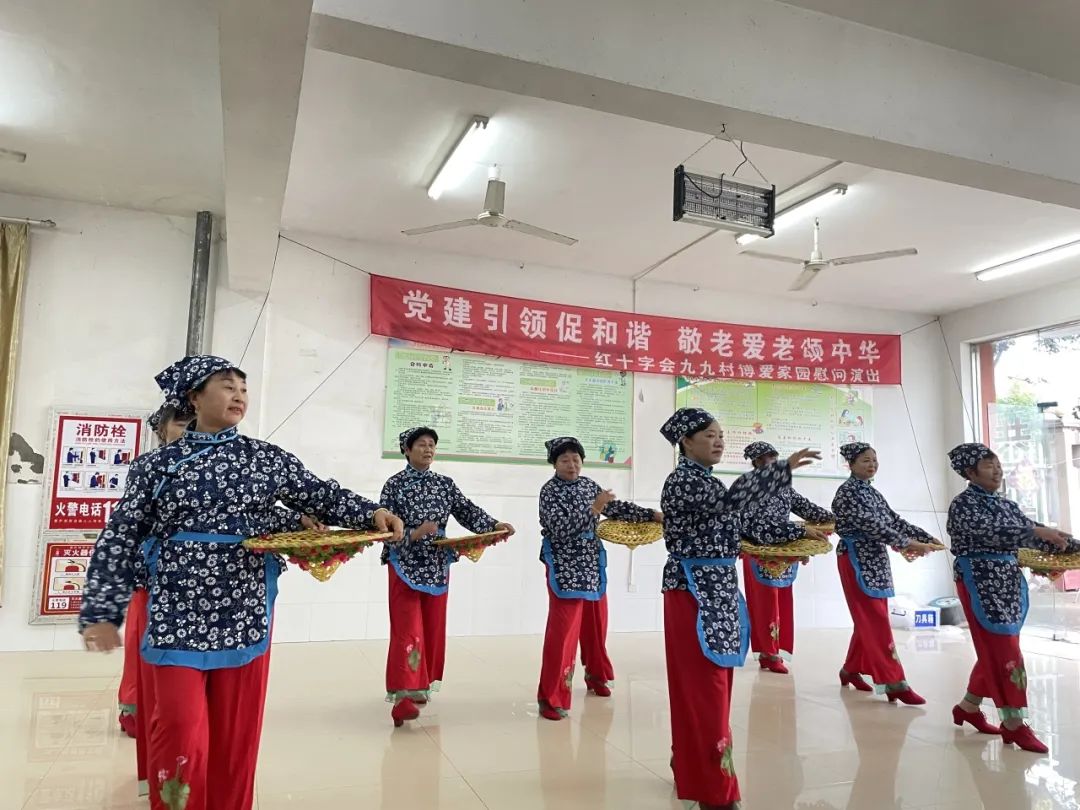 活动伊始,在音乐声中,九九村舞蹈队用一曲《祝福祖国》拉开了中秋节慰问活动的序幕,随后的手花舞《张灯结彩》《九九女儿红》《谁留下的一抹红》《采茶舞》《潇洒走一回》等歌舞表演都让老人们开心不已,志愿者演唱《今天是个好日子》时,老人们也跟着哼唱起来,九九村博爱家园的志愿者们表演传统民俗“挑花担”更是将此次活动推向了高潮,演出最后,志愿者和老人们共同唱响《没有共产党就没有新中国》,礼赞党的丰功伟绩,表达自己的爱党爱国之情。