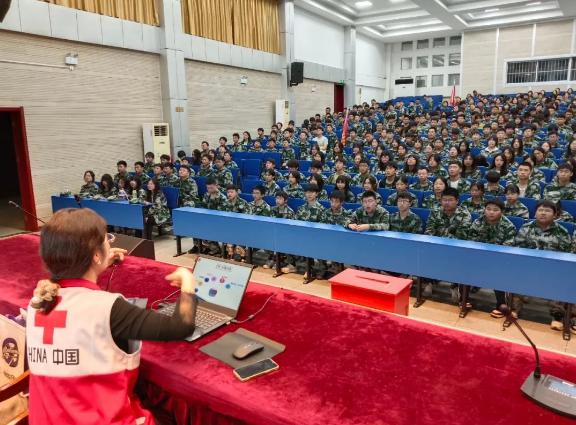 10月11日晚,句容市红十字会救护培训讲师李树丽来到江苏省句容中等专业学校,为该校550多名新生开展急救科普知识培训。