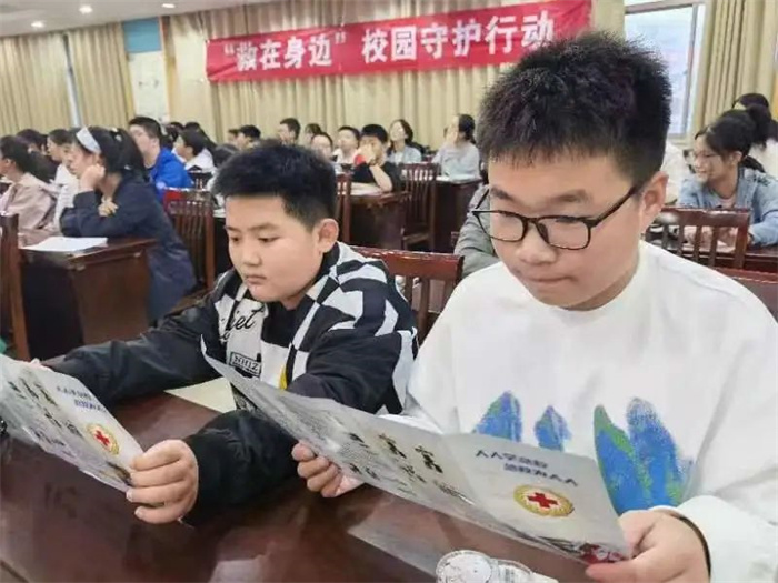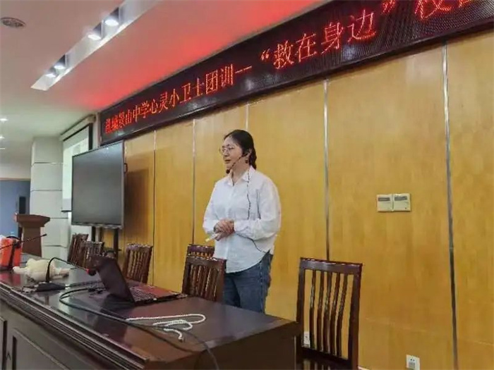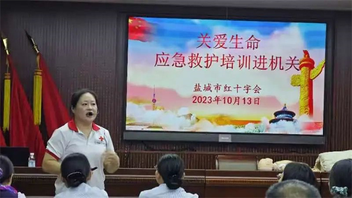 10月13日,市红十字应急救护师资队在盐城景山中学为120名中学生应急救护普及培训活动。