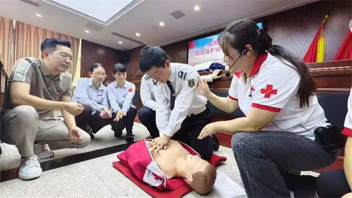 10月13日,市红十字会联合市级机关工委开展第三期应急救护培训进机关活动,市委党史办、市教育局、市住房和城乡建设局等54名干部职工参加应急救护培训,学习AED使用与心肺复苏急救知识技能。