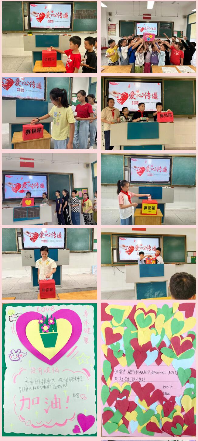 同窗之谊,默默祝福。捐款倡议发出后,爱心涌动,善良的容贝学子将自己平时攒的零花钱、压岁钱都拿出来捐给了张同学。四(5)班学生还制作了爱心小卡片,录制了温心的视频,鼓励张同学战胜病魔,重返校园。