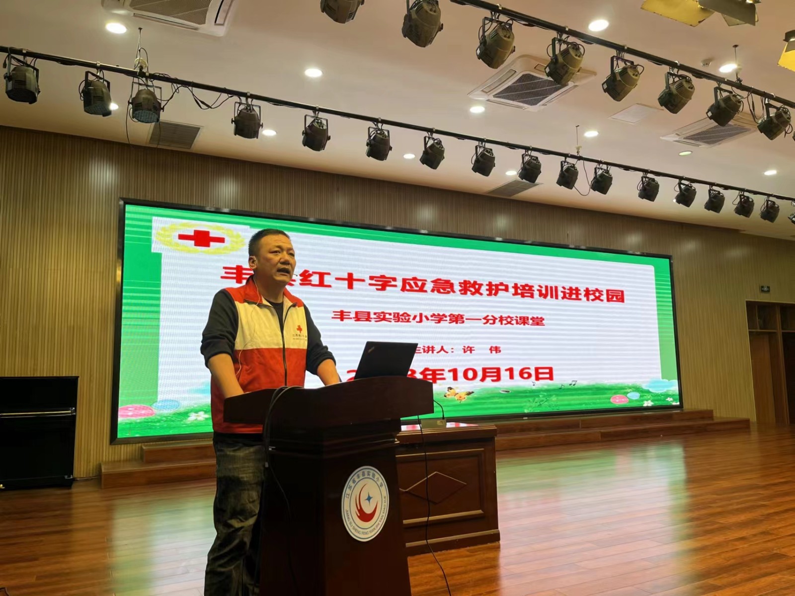 10月16日,丰县红十字会在实验小学第一分校会议室举行了一期应急救护知识培训班,对100余名教师开展了一场生动的救护技能培训课。