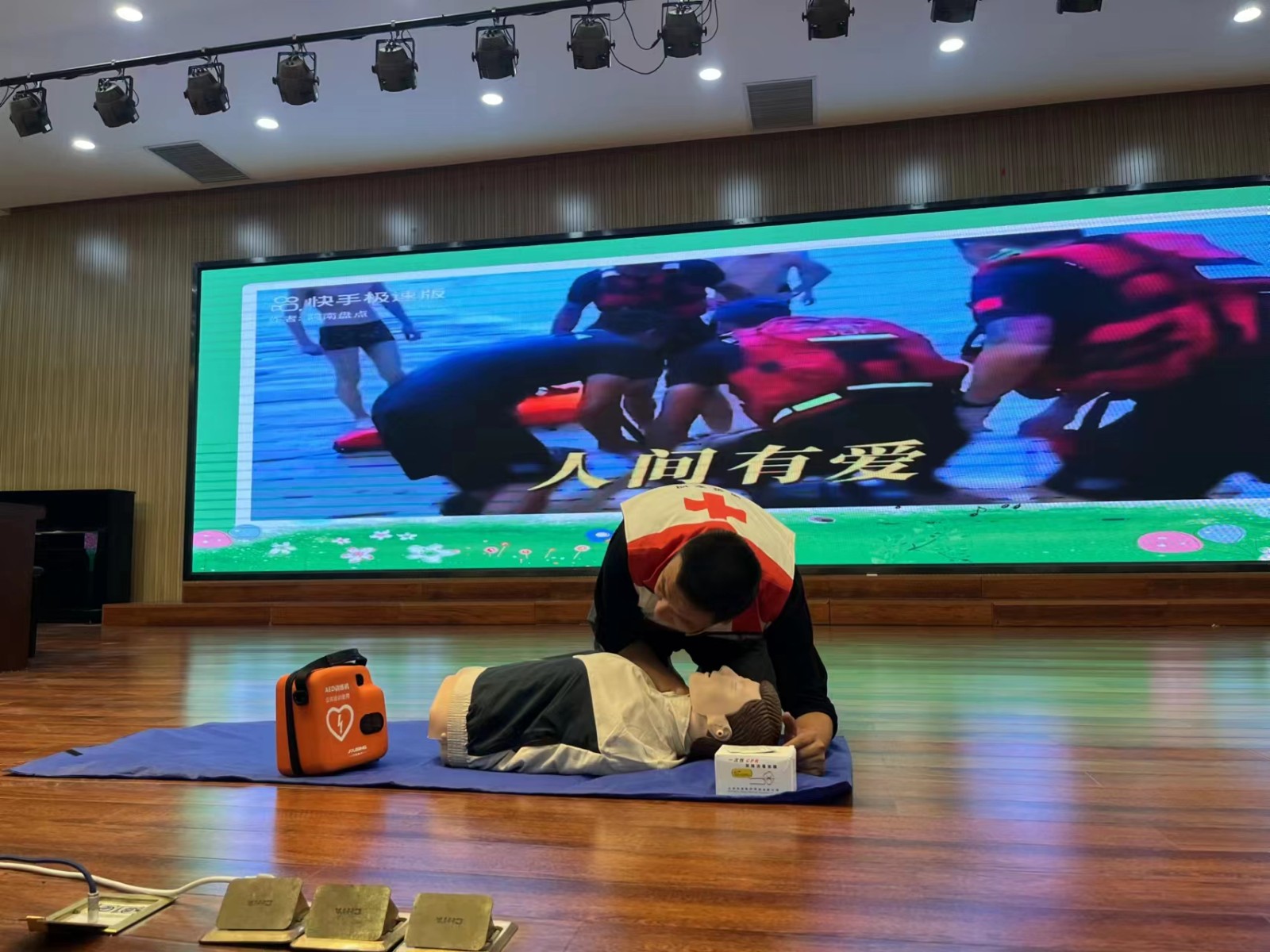 此次培训主要针对校园常见意外伤害,重点讲解了心肺复苏、AED机的使用及气道异物梗阻的救护及其注意事项。