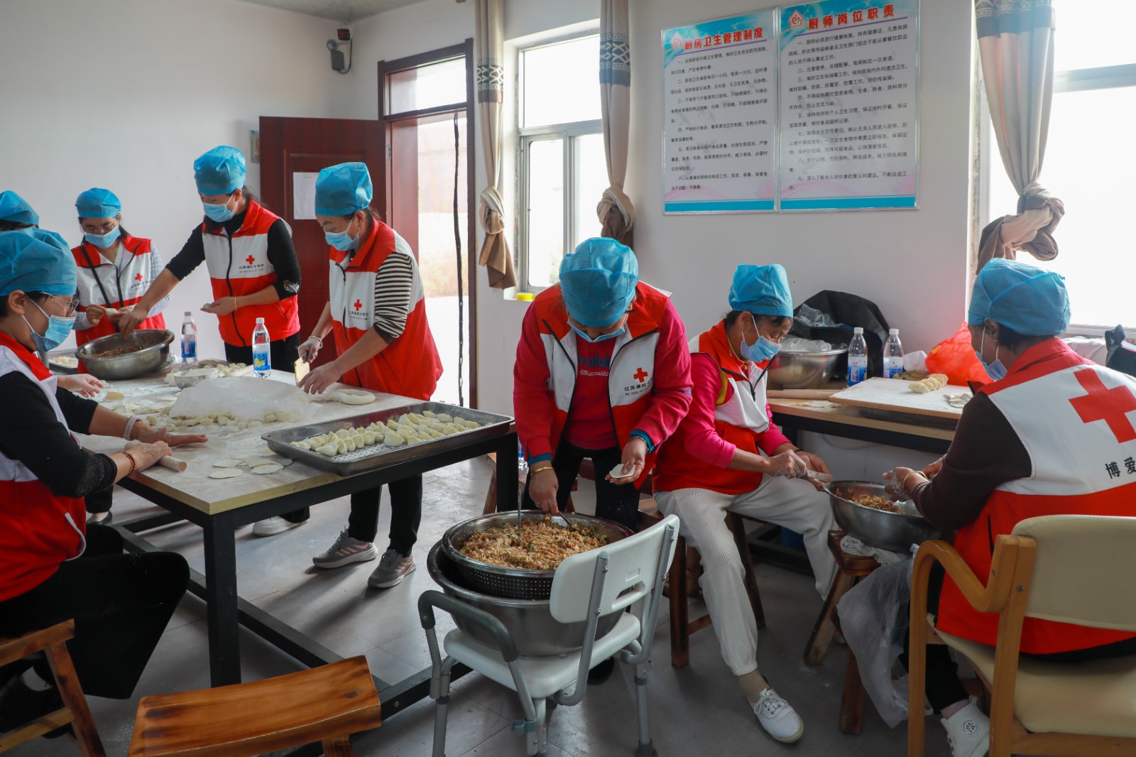 值我国传统节日“重阳节”来临之际,为更好地传承中华民族的传统美德,营造爱老、敬老、尊老、助老的良好氛围。丰县红十字博爱志愿服务队联合丰县红十字会走进丰县王沟镇单楼村博爱家园,开展了“爱在深秋,情暖重阳”饺子宴为主题的爱心志愿服务活动,看望慰问了博爱家园的70岁以上的老人们,并举办了“百人爱老敬老饺子宴”,和老人们欢聚一堂,让老人们深切感受到家的温暖,度过一个温馨又难忘的九九重阳节。
