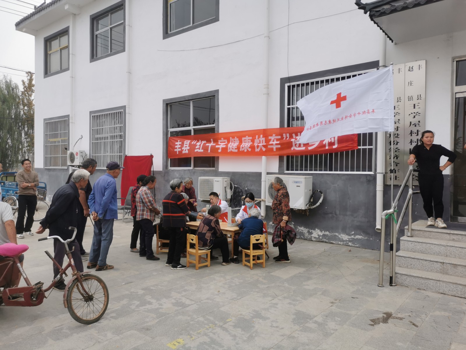 10月18日,丰县“红十字健康快车”驶进赵庄镇王学屋村,为村民们免费开展义诊、照相等志愿服务。活动现场医务工作者为前来咨询的老人免费测量血压,提供医疗咨询,发放健康宣传资料,本次活动服务群众达100余人,受到了村民们的一致好评。
