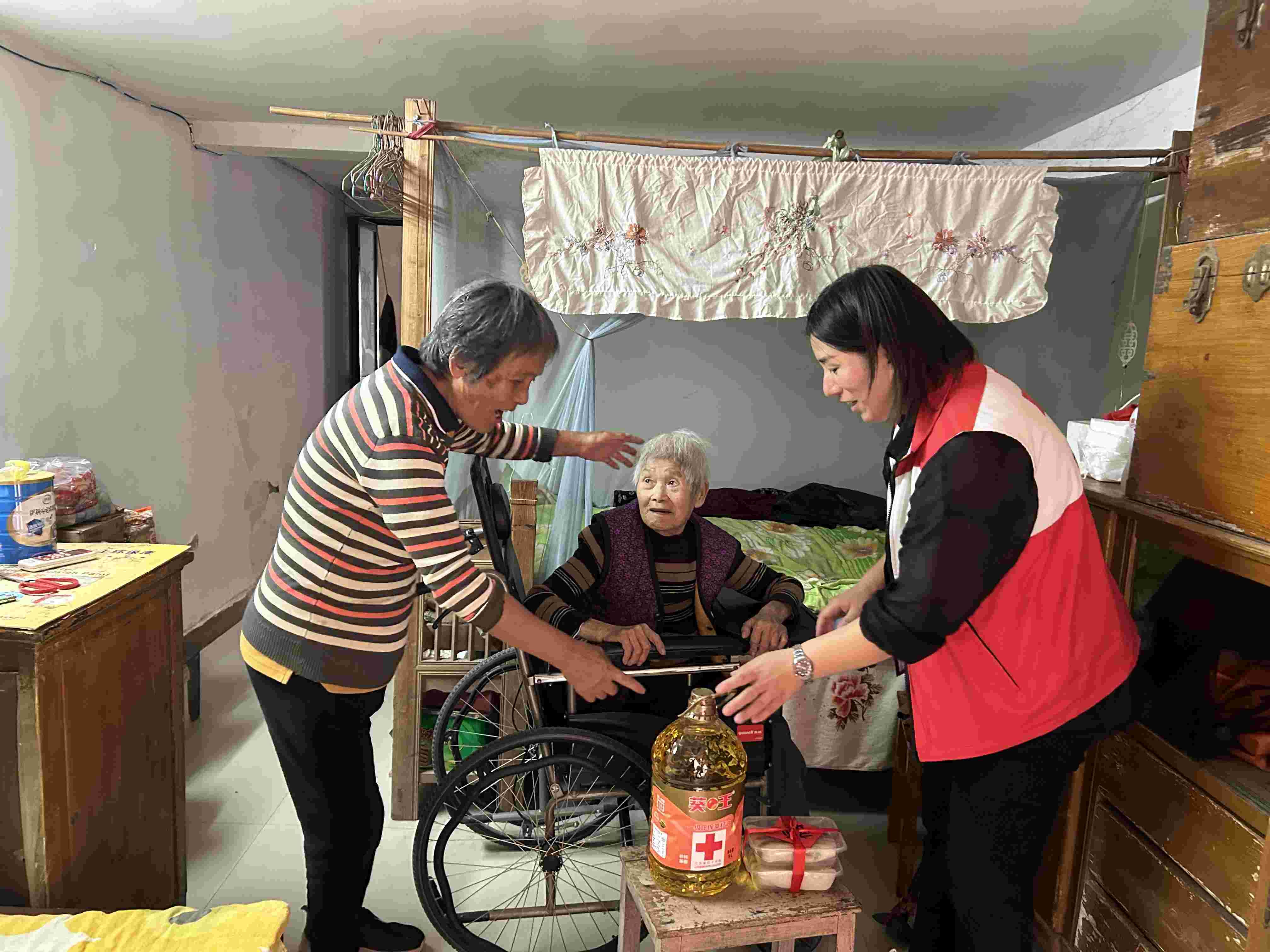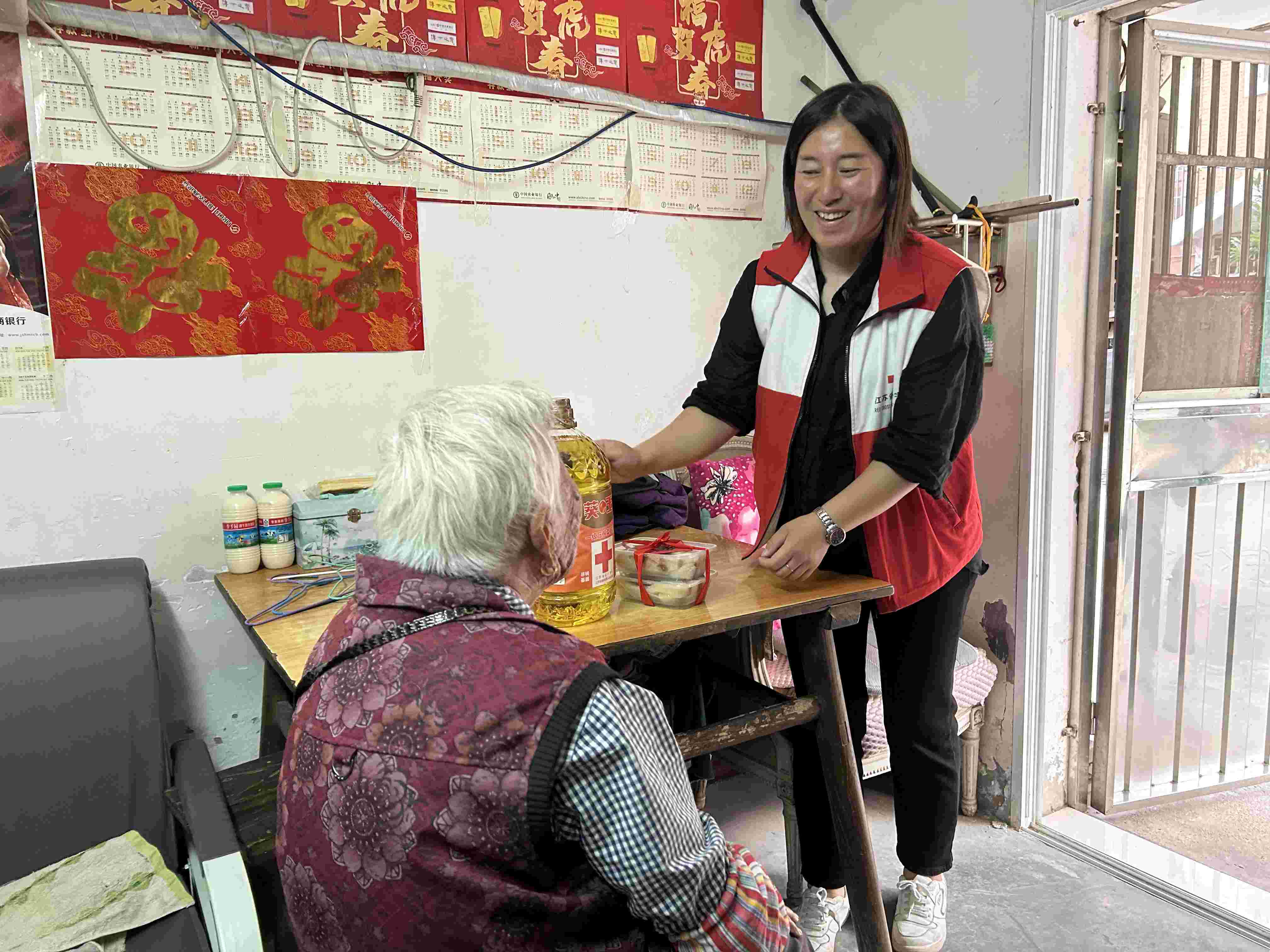 为大力弘扬“人道、博爱、奉献”的红十字精神和中华民族尊老、敬老的传统美德,10月16日下午,月亮湾社区博爱家园组织志愿者开展走访慰问辖区高龄老人活动,为老人送去重阳糕、油等慰问品和节日祝福。