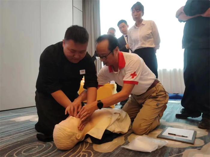 10月17日,市红十字应急救护师资队在盐城国展诺富特酒店,为40余名职工开展初级救护员持证培训。