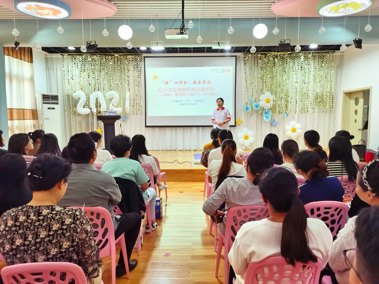 本次培训面向万达城幼儿园、保利实验幼儿园、萌宝教育中心等三所托育机构的91名教职员工及学生家长开展,并邀请区红十字专职教师范莉娜老师作主讲,蒋小燕和顾瑾为助教老师。