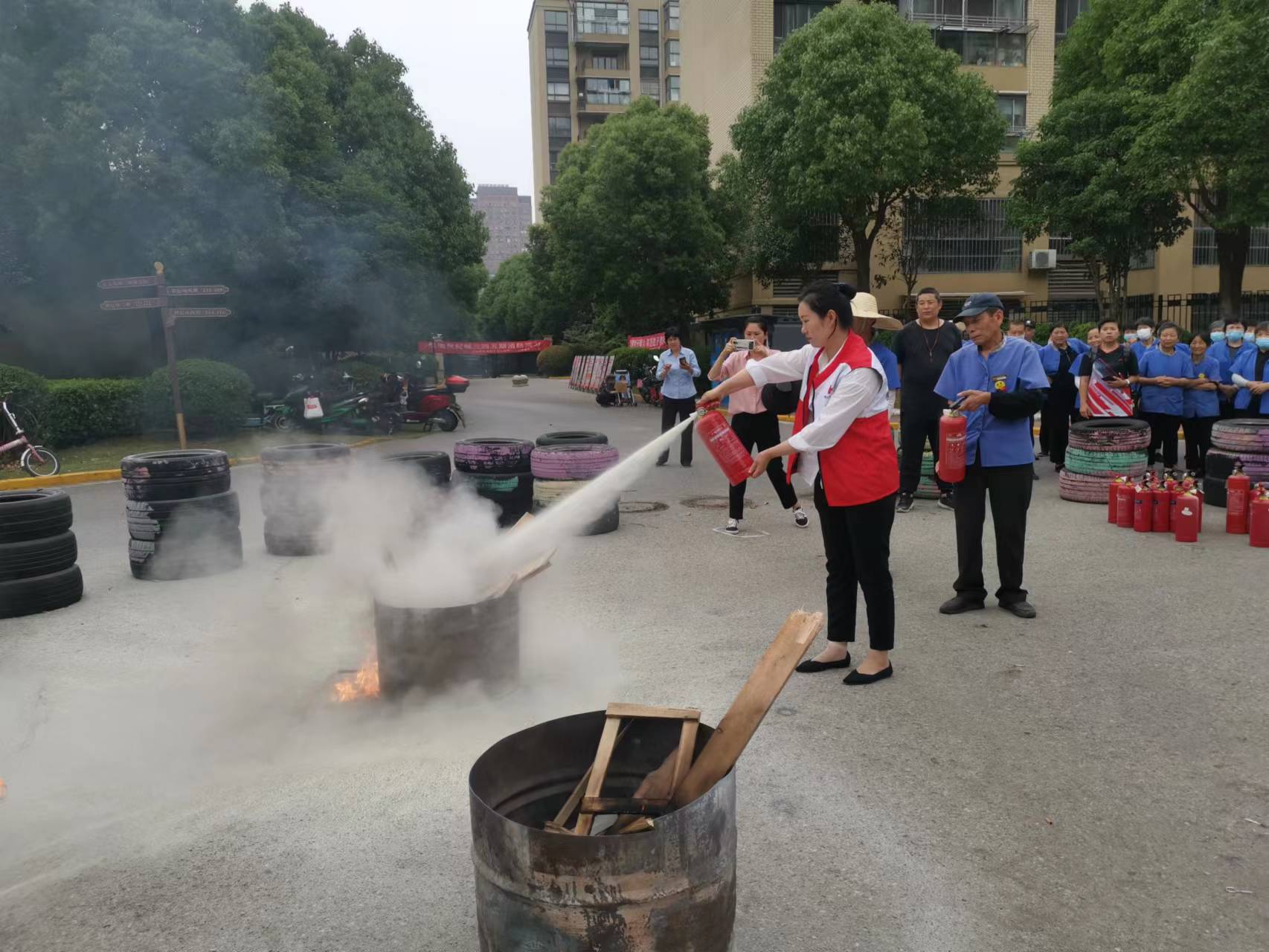 实地演练现场,惠南一社区联合绿地世纪城三四五期物业单位开展防灾减灾应急救援演习,演习内容包括火灾报警、疏散逃生、抢险救援、现场急救、消防器材使用教学及灭火实战演练。提高了物业人员的防灾减灾知识和实际操作能力,增强了小区居民的防灾安全意识,为确保小区安全、创建平安社区奠定了坚实的基础。