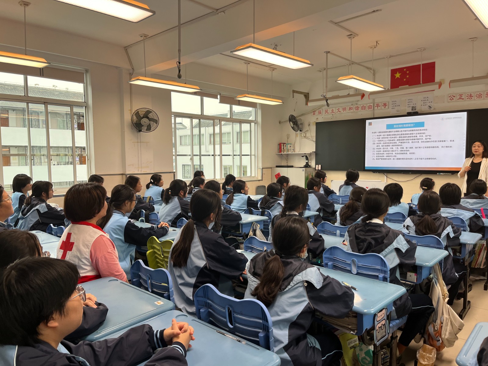 为增强未成年人的法治观念,进一步构建安全、和谐、文明的校园环境。10月13日下午,梁溪区崇安寺街道崇宁路社区红十字会助力辖区校园安全教育,邀请江苏庆源律师事务所崔静律师来到无锡市第一女子中学高二四班开展“妇儿权益维护与安全守护课堂”普法讲座。