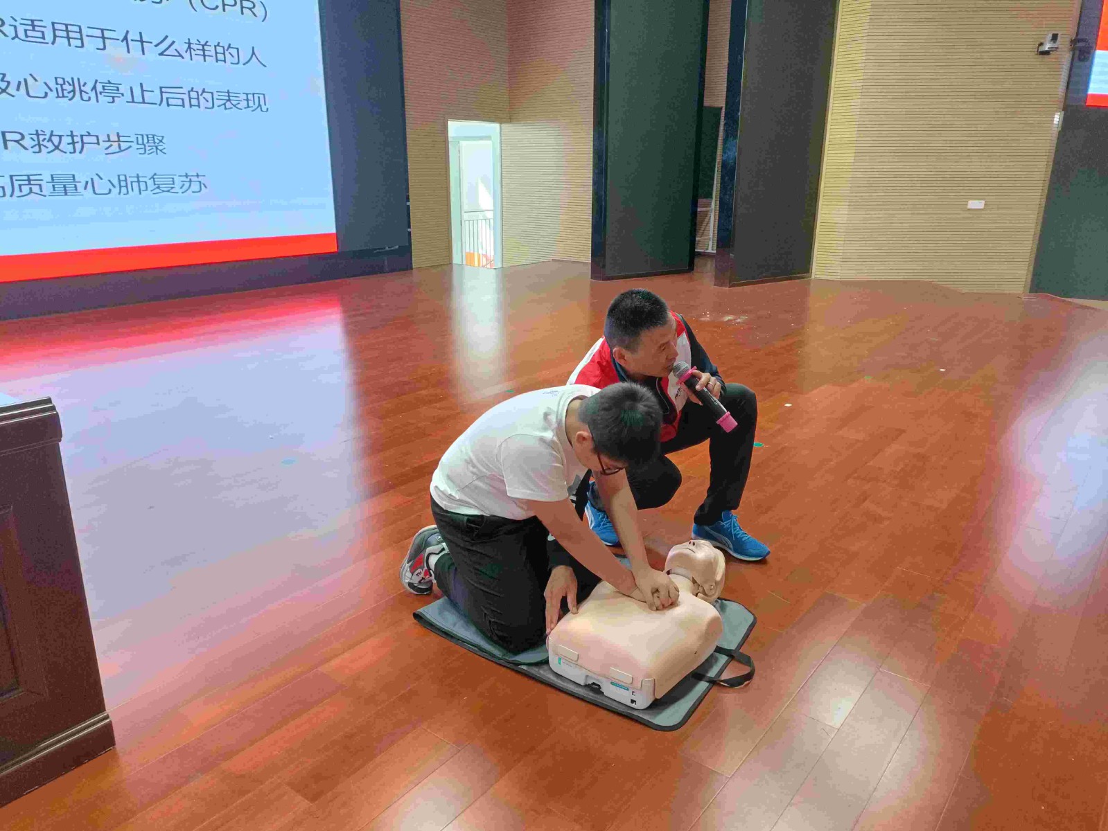 培训老师采用理论知识与实际操作相结合的方式,深入浅出地为大家讲授了心肺复苏术及AED使用、发生气管异物梗阻时的海姆立克急救法等常规救护技能。实际操作环节,老师邀请学生进行现场模拟操作。培训现场学生认真听讲,积极举手提问,踊跃参与操作实践。