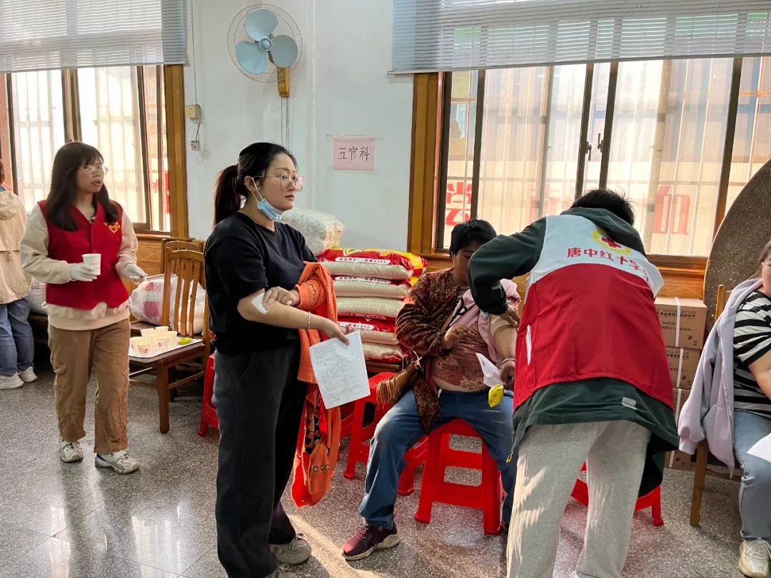 10月17日,盐城市中心血站东台采血点到唐洋镇区采血,镇区群众热情高涨,踊跃献血,而身着红十字志愿服的学生志愿者则成为现场最靓的那抹红。