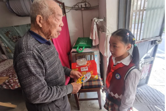 “爷爷,这是我自己做的贺卡,祝您重阳节快乐。”23日上午,竹行街道星怡社区红十字服务站组织联合南通市竹行小学红十字会开展“九九重阳节浓浓敬老情”活动,上门给辖区高龄老人送去重阳节的慰问和祝福。
