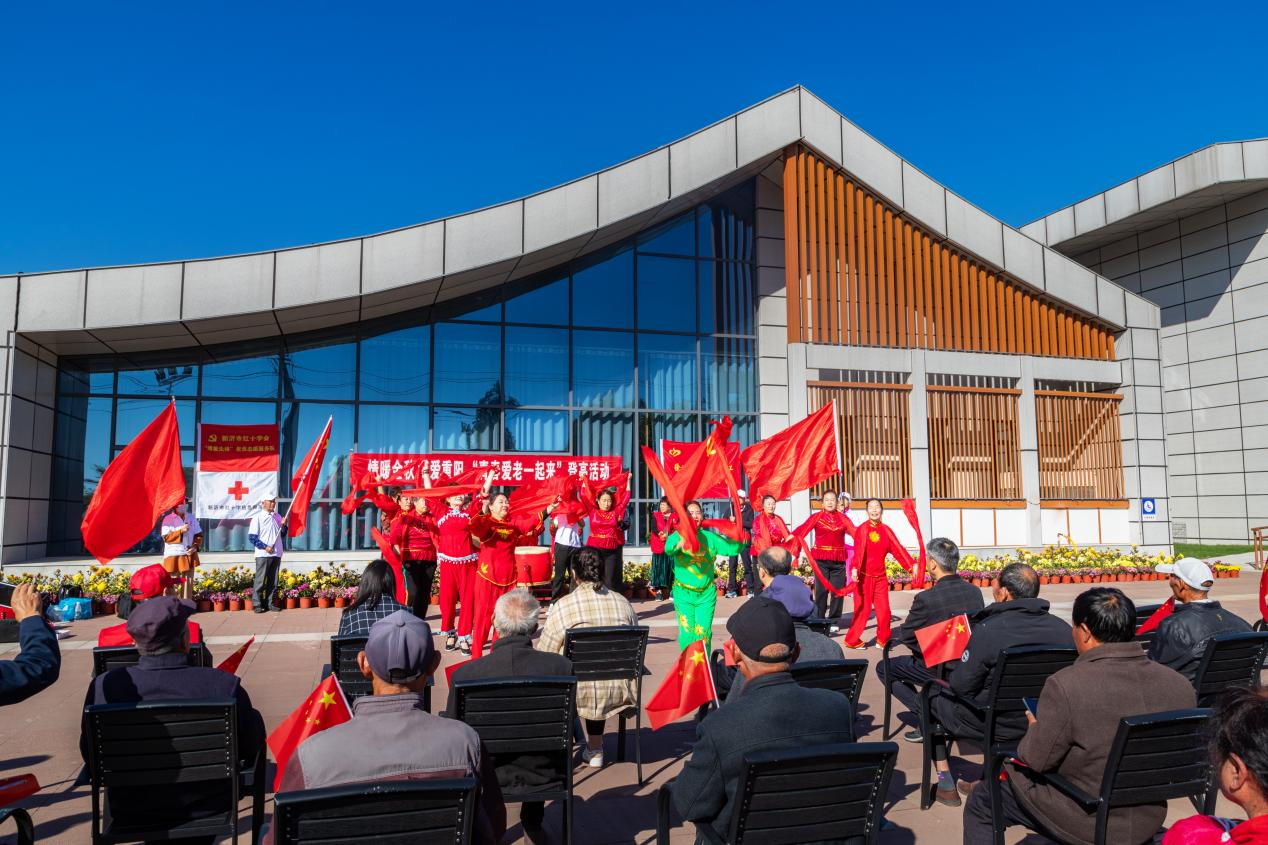 新沂市红十字应急救援队志愿者为老人表演诗朗诵、歌舞,陪伴老人度过一个幸福安康的重阳节,老人们激动地说:“新沂市红十字会花了不少心思,组织的活动非常成功,比以前的都好,有打鼓队,有夕阳红队,有体协队,有拉球舞,有秧歌舞,男女双人唱,各位独唱,诗朗诵,非常成功,表示感谢哈,以后只要有这样活动让我们都参加,还发了红长围巾,帽子,桂片糕等,真好,年龄大了出门玩的机会越来越少啦”