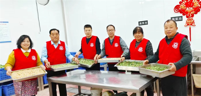 在厨房里,志愿者自带食材,有的切菜、有的和馅,有的包饺,欢声笑语、其乐融融,大家忙得不亦乐乎。为老人们准备的一盘又一盘水饺很快呈现在众人面前。