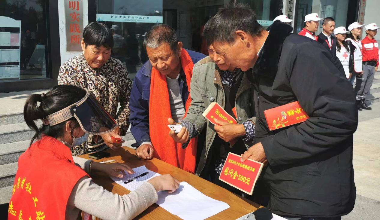 徐州市红十字会秘书长陈正孙为70位老人带来3.5万元人民币,新沂市红十字会为老人准备了红围巾和重阳糕,向他们致以节日的问候和祝福,并与他们聊生活、拉家常,详细了解他们的身体状况、生活情况等,并为他们送上节日祝福和慰问金,传播了“人道、博爱、奉献”的红十字精神,让老人们在金秋时节深切感受感受到温馨、祥和的节日气氛。