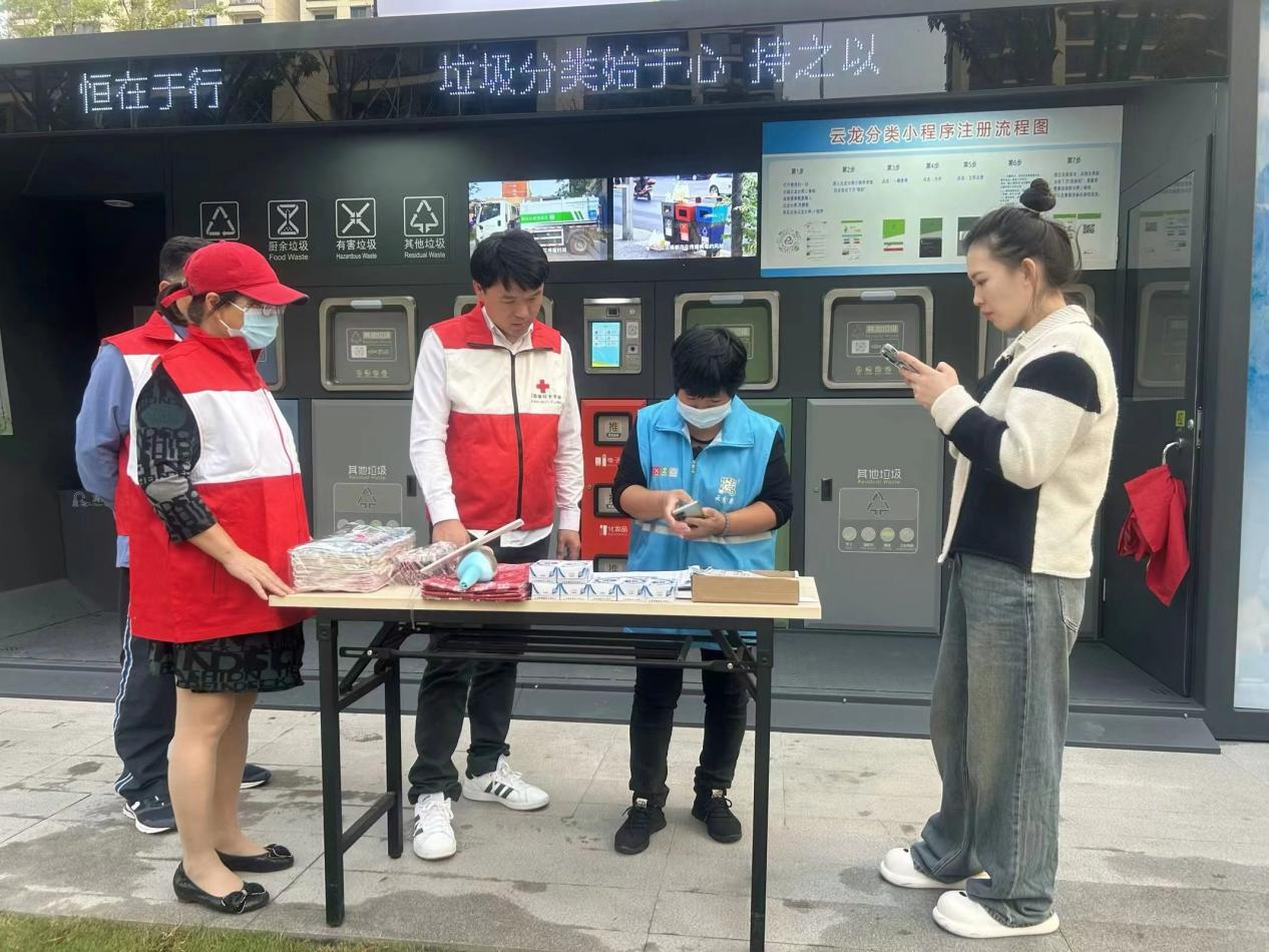 为创建文明城市,改善居民生活环境,云龙区汉风街道太行路社区红十字博爱家园志愿者服务队,来到雍华府小区,进行垃圾分类宣传,引导居民把自己生活垃圾进行分类。
