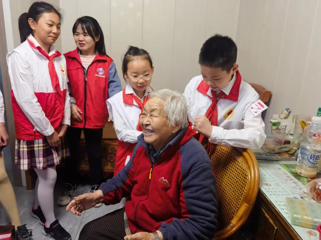 活动一、烽火志愿,敬老爱老。晴空万里、丹桂飘香,党员、团员老师和少先队员们迈着轻快的步伐走进省文明家庭王沛琴、省劳模黄新桃、省劳模黄玉萍老人家中慰问,小小志愿者们们用纯真的笑脸和热情的问候向老人们致意,有的送上了精心准备的小礼物,有的尽自己所能为老人做一件力所能及的事,扫扫地擦擦桌子捶捶背......这一份份的情都代表着他们的一颗爱心。队员们暖心的举动引得老人们啧啧赞叹!