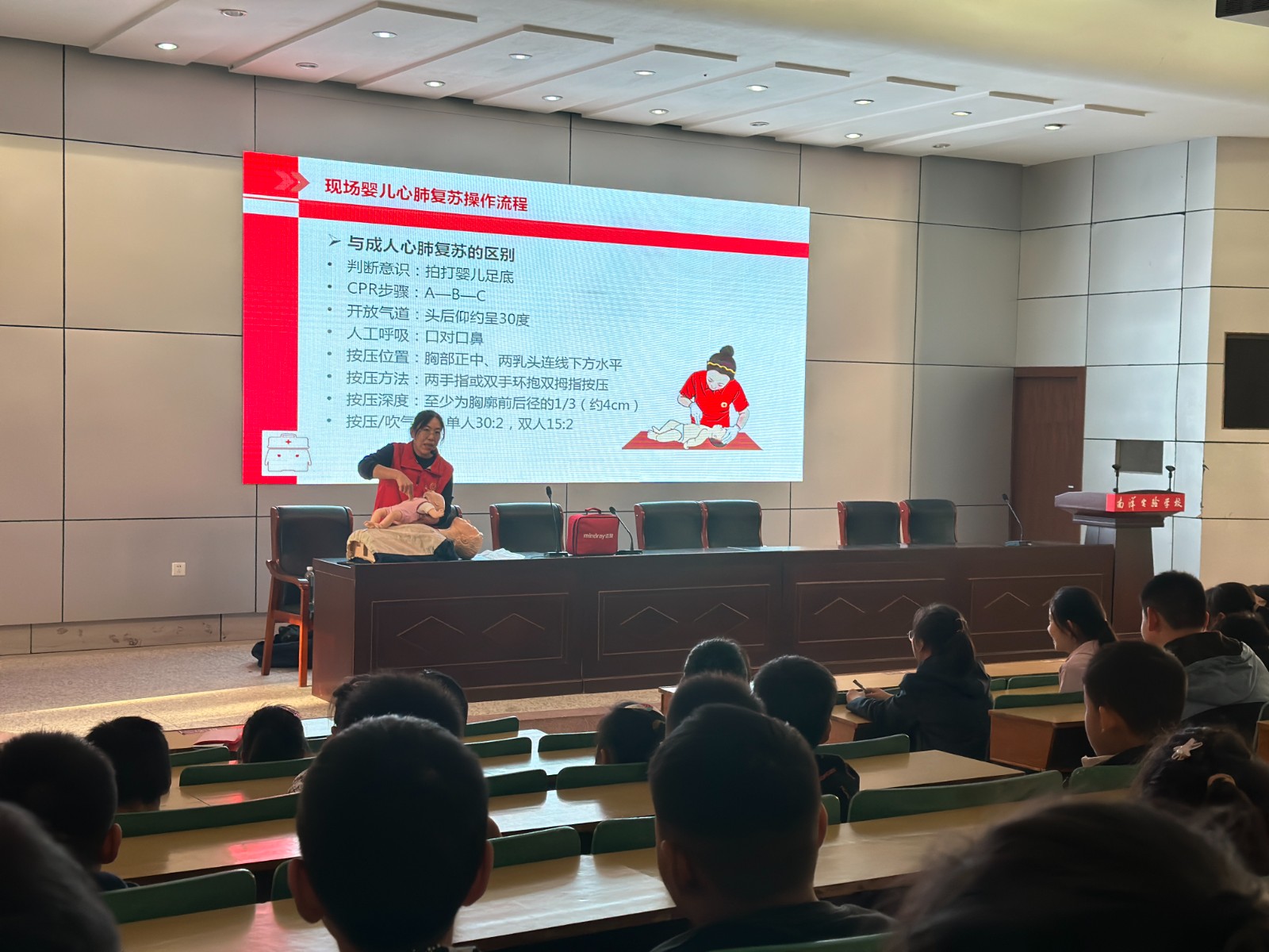 10月20日,盐城市亭湖区红十字会组织志愿者、应急救护培训讲师走进南洋实验学校,为广大师生带来生动的应急救护知识培训。培训分为理论和实操训练两部分,内容主要包括心肺复苏术和海姆立克急救法。志愿者讲师通过图文并茂的课件,详细讲解了应急救护的步骤、要点及注意事项。师生们一起用心聆听,积极互动,踊跃参与实操训练,以学促练,以练促学,进一步提升了应对突发事件和意外伤害的救护能力。