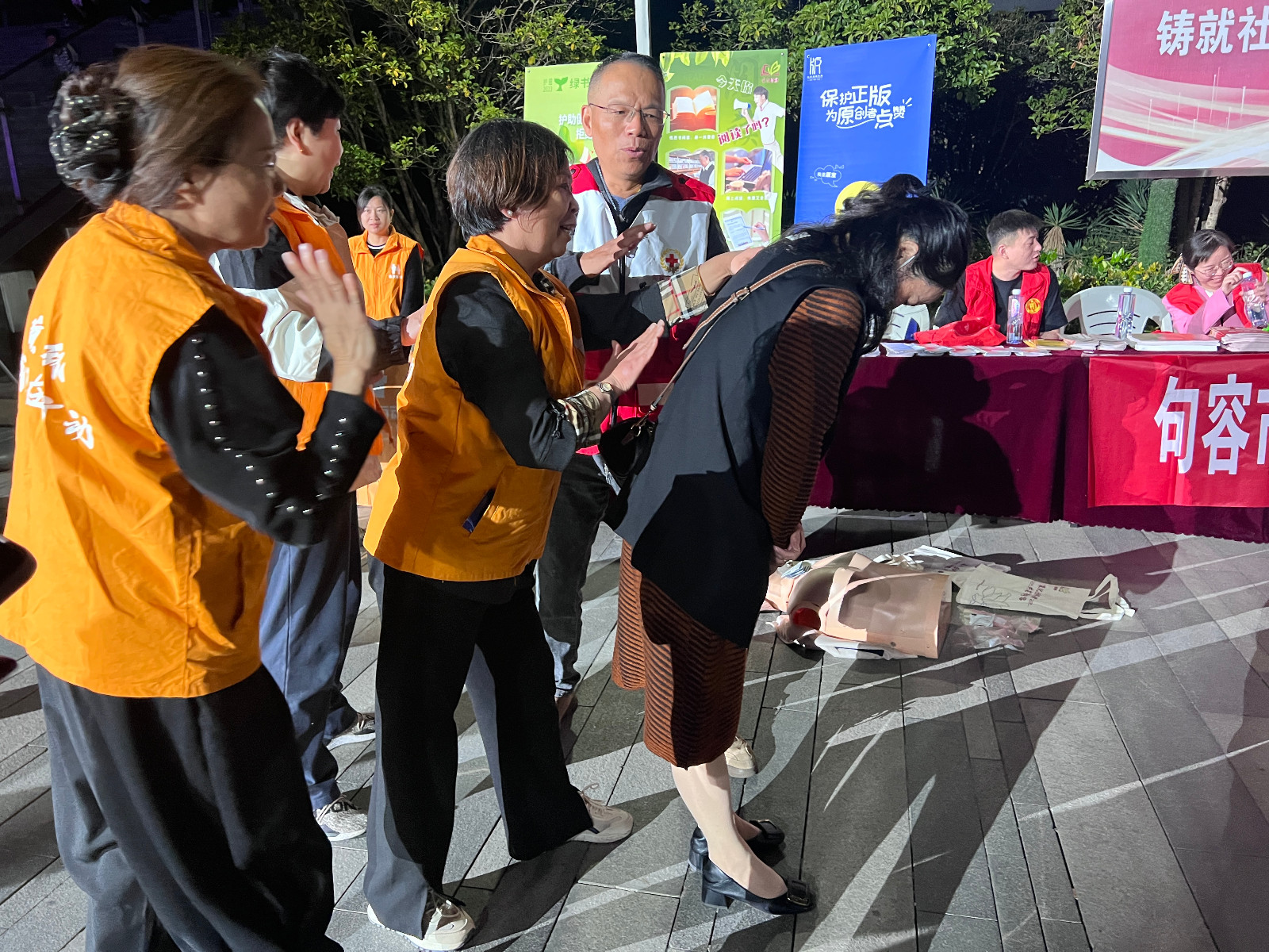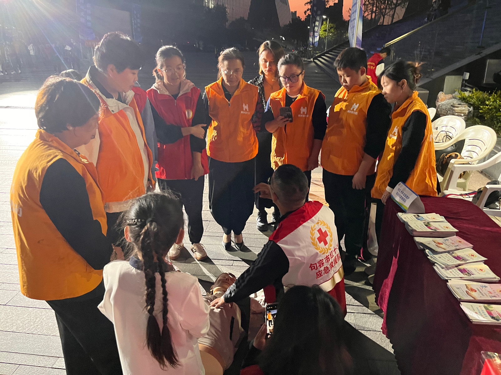 10月29日晚,“网‘句’文明 你我同行”2023句容市第六届网络嘉年华活动在文化艺术中心大剧院举行,吸引了众多市民参加。句容市红十字会组织工作人员和志愿者来到活动现场,设立专门的咨询台,发放救护宣传手册,宣讲应急救护知识,将一堂应急救护培训课上到了网络嘉年华的活动现场。