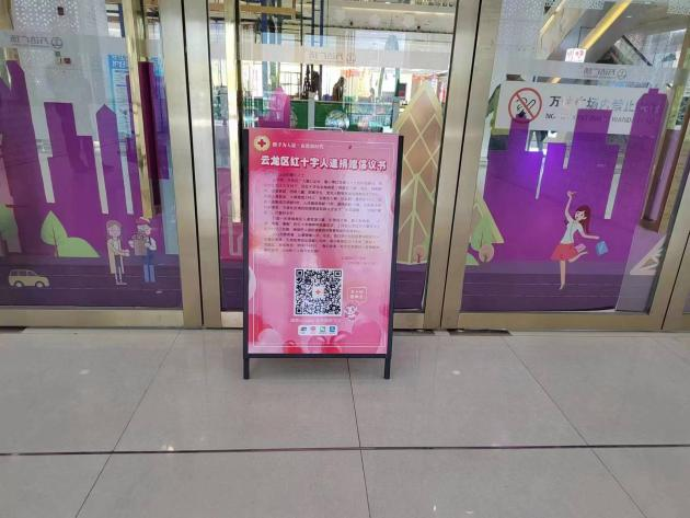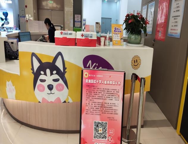 区红十字会来到区图书馆、汉文化景区、云龙万达、万科新淮中心、招商花园城、绿地缤纷城,宣武市场、师大科技园等8家区内重要的商场、市场、景区场所,在主要人流出入口、汇集点等地放置红十字宣传立牌。宣传立牌一面为《云龙区红十字人道捐赠倡议书》及募捐二维码,一面为区红十字会公众号二维码入口,可以让居民、游客等直观、方便地了解区内人道事业,奉献自己的爱心。在各商场、市场、景区服务台、咨询台,区红十字会配备了红十字救护箱,为应对场所突发事件及时处置提供了保障。此轮物资配备后,区红十字会将为各商场、市场、景区红十字志愿巡护队队员开展“救护员”持证培训,同时对物业、商户及其他工作人员开展普及性培训,筑牢自救互救生命健康安全防线。