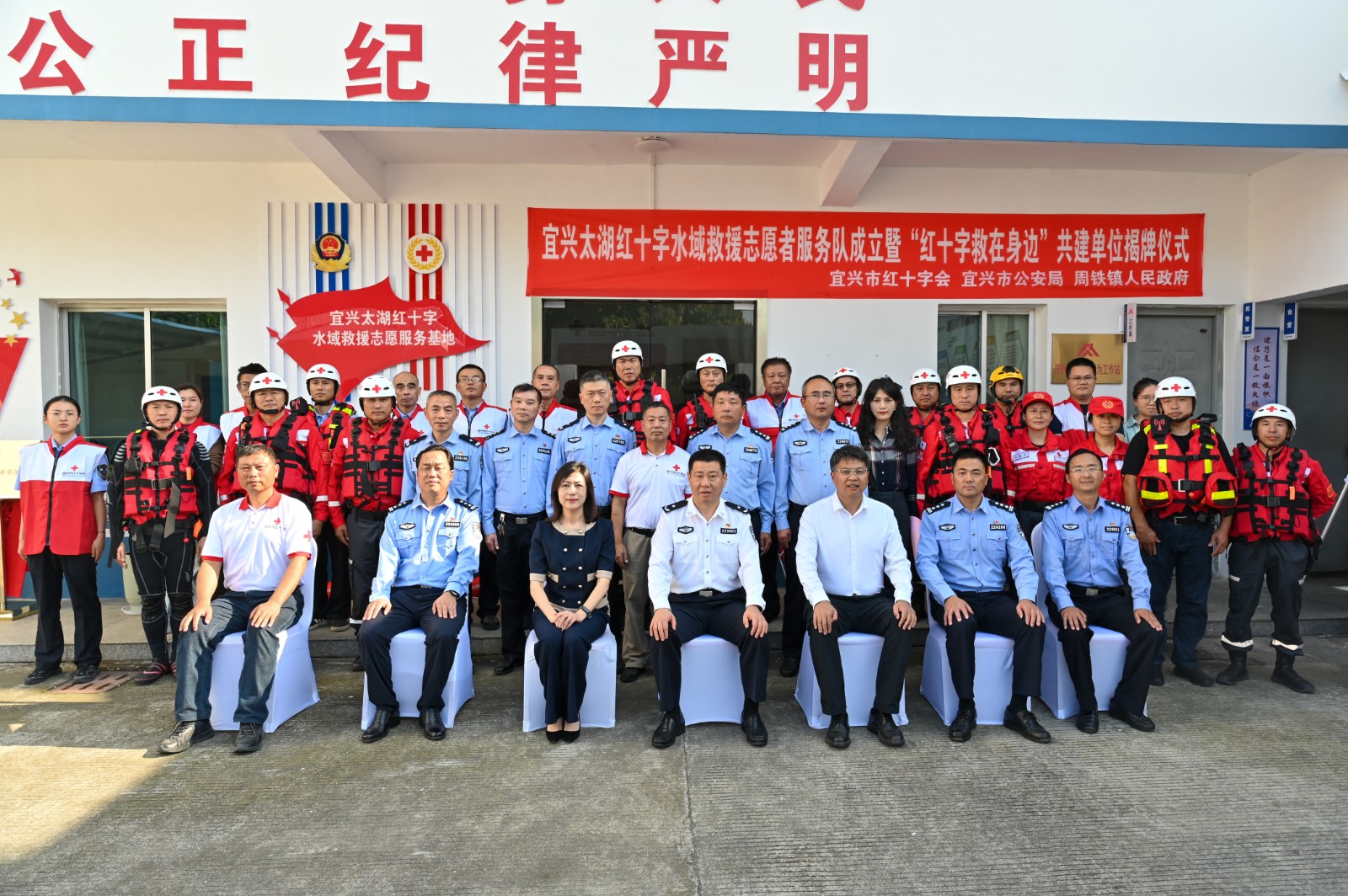 宜兴市人民政府副市长、公安局局长周杰为“宜兴太湖红十字水域救援志愿服务基地”揭牌。宜兴太湖红十字水域救援志愿服务基地将围绕水域实训基地的基础设施优势,以“精准化、专业化、实战化”为抓手,为深化水域救援培训、演练和实战等提供更专业、更有利的硬件支撑。