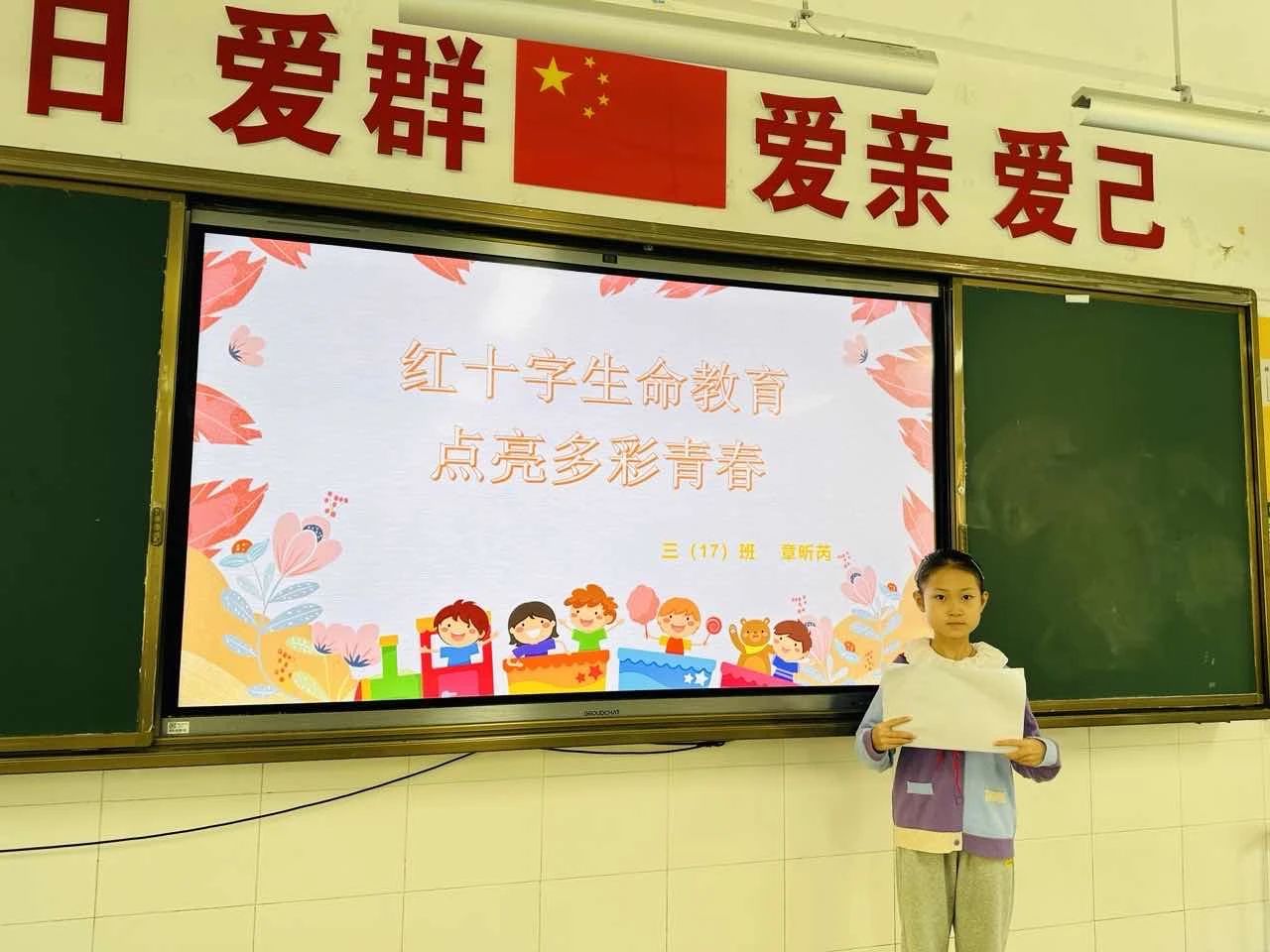 我们和爱园里的宣讲员们也纷纷走上讲台,向同学们宣讲这红十字会的常识,并结合同学们的生活实际宣讲生命安全教育,青春期心理健康知识,食品、卫生健康知识、地震、火灾、水灾等极端气候灾难下的自救知识。
