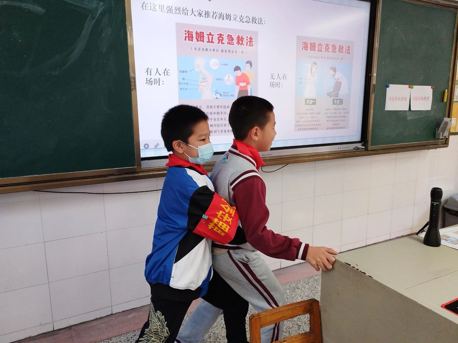 为了在有限的时间内让学生们了解更多的应急救护知识,老师们针对校园最易发生的突发状况,结合小学生的心理特点及接受程度,对紧急避险、意外伤害、防溺水、气道异物梗阻等急救知识采用“理论讲解+做游戏+实践互动”的方法,让学生身临其境进行体验,将专业知识以通俗易懂的方式为孩子们进行了讲解,激发了学生浓厚的学习兴趣和体验感知。