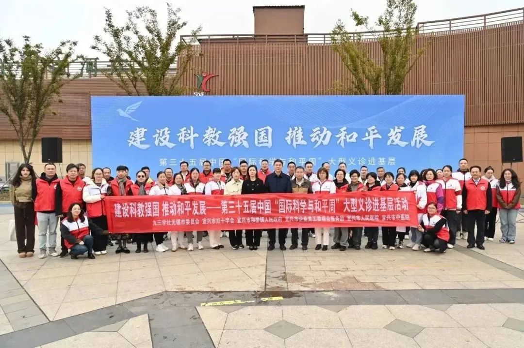 11月12日,由九三学社无锡市委员会、宜兴市红十字会、宜兴市和桥镇人民政府、宜兴市企业关工委服务团、宜兴市人民医院、宜兴市中医医院共同主办的第三十五届中国“国际科学与和平周”大型义诊进基层活动在和桥镇禾苑广场举行。