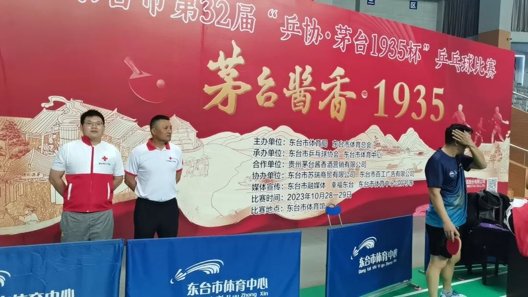近日,由东台市体育局、东台市体育总会主办的东台市第32届“乒协·茅台1935杯”乒乓球比赛在市体育馆举行,江苏省红十字(东台)救援队为赛事提供全程应急救护保障服务。来自各镇区、各部门企事业单位、新曹农场、弶港农场26支代表队的200运动员齐聚一堂,享受一年一度的乒乓盛宴。