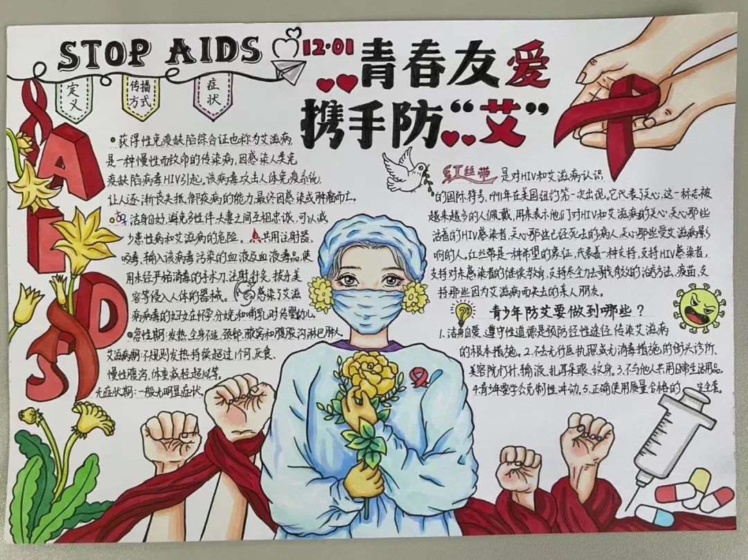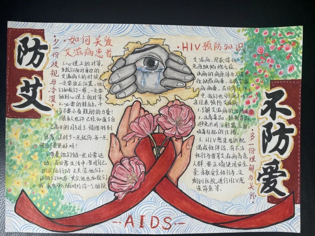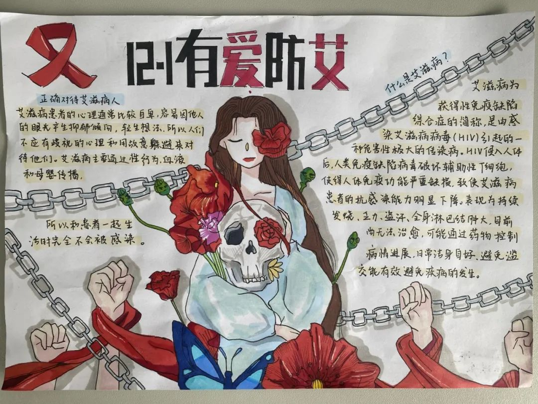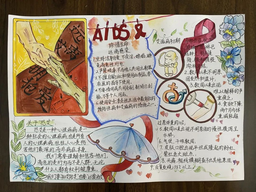 凝聚社会力量,合力共抗艾滋。近日,折桂中学开展了以“珍爱生命,远离艾滋”为主题的手抄报比赛,积极普及艾滋病防治知识,切实提高师生防艾知识水平,并发动同学们将学习内容带入千家万户,扎实为遏制艾滋病的传播与蔓延作出努力。