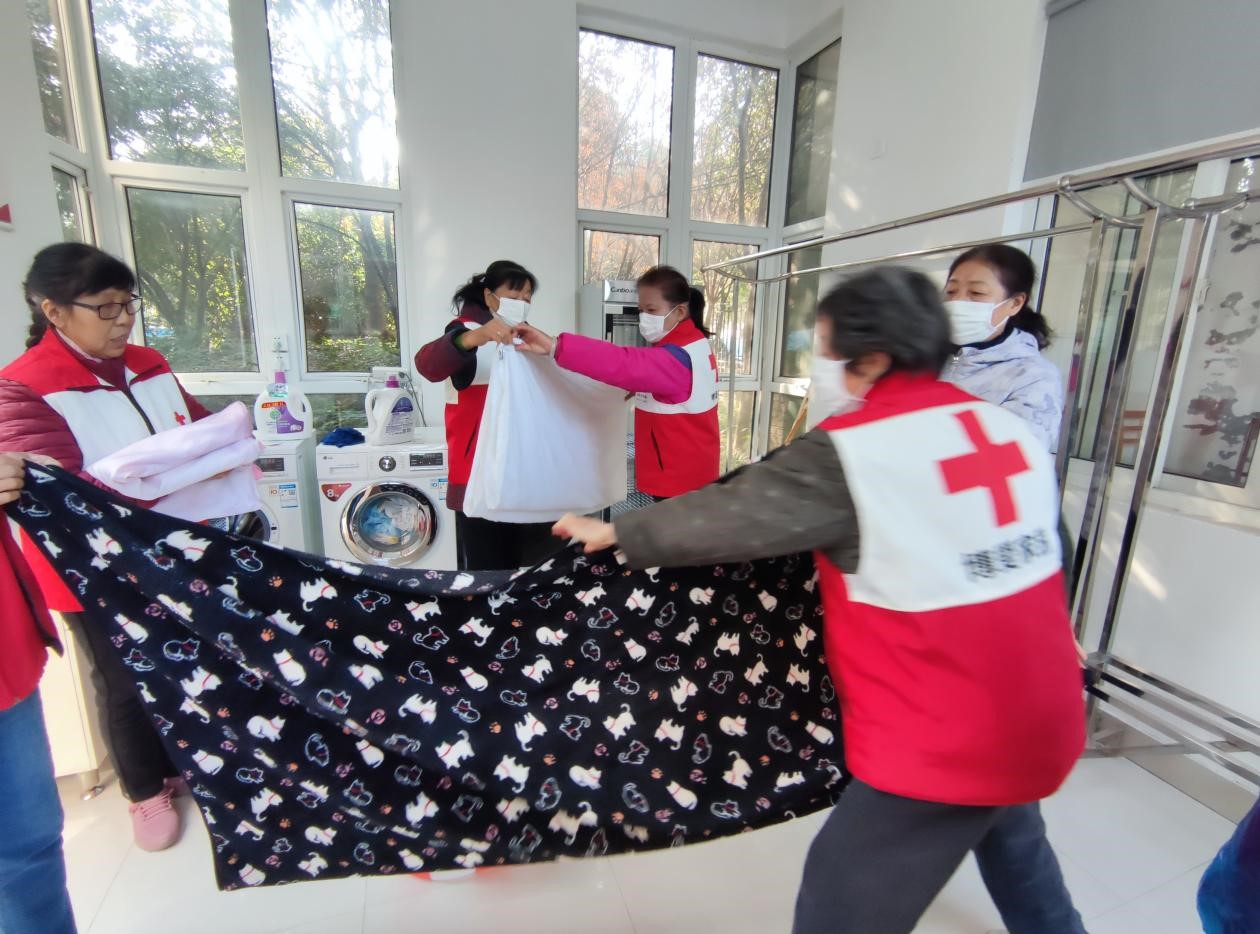 为了弘扬敬老、爱老的中华传统美德,方便社区老人的日常生活。近日,城东街道新桥北村社区博爱家园的志愿者们开展志愿服务活动,为社区的孤寡老人、高龄独居老人、特殊困难老人,清洗床单、被套,给他们送去温暖。