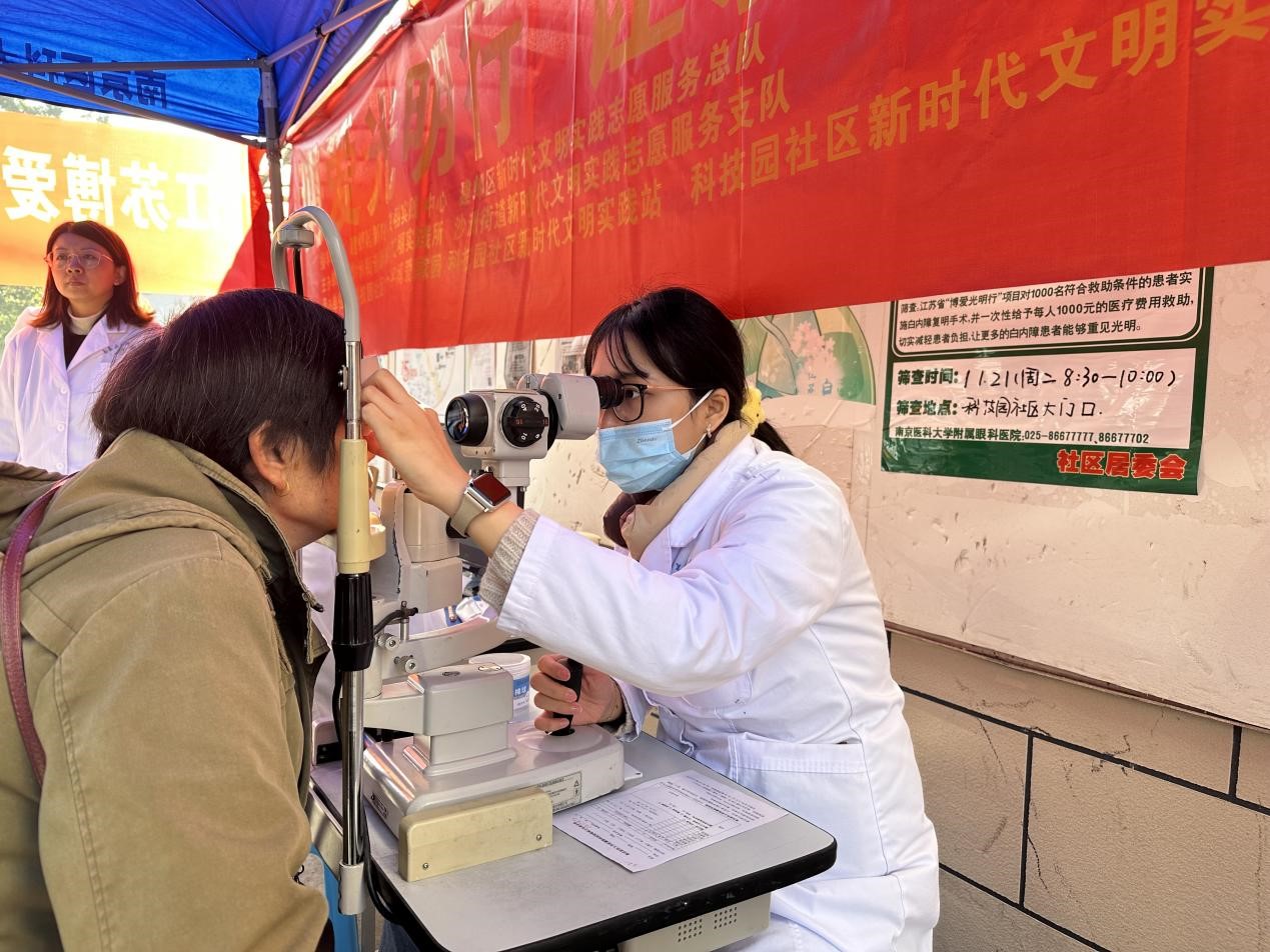 11月21日,南京市建邺区红十字会联合南京医科大学附属眼科医院在沙洲街道科技园社区为居民开展“博爱光明行,让爱看的见”——红十字博爱家园义诊服务活动,共有200余名居民参加了检查。