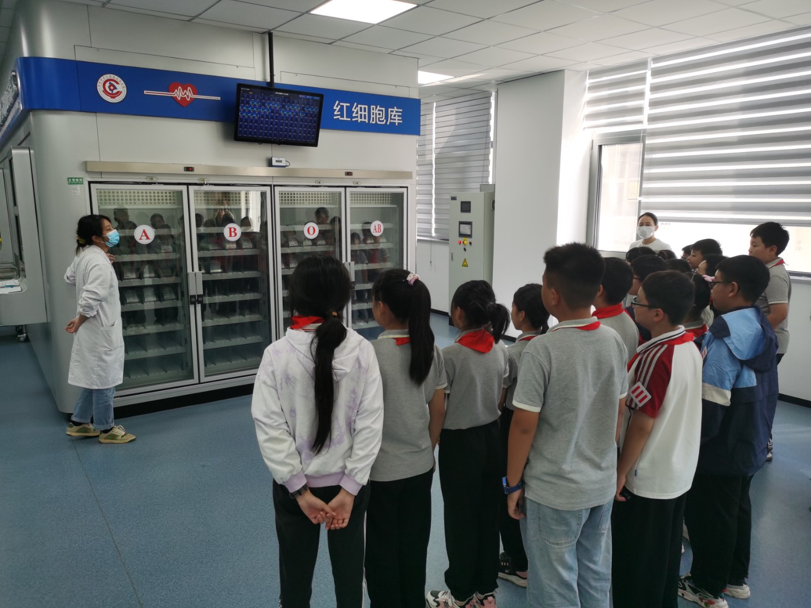 活动当天,直塘小学第一站来到了太仓市血站。血站工作人员带领孩子们参观了智能血库,了解血液从采集、制备,检测、储存到发往临床的全流程,并结合血液生理知识以及无偿献血现有的相关政策,让孩子们了解、关注无偿献血,从而在心中种下一颗“无偿献血”的种子。