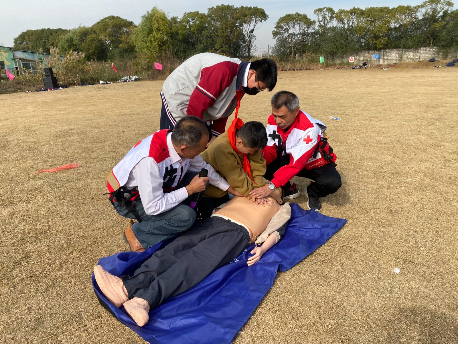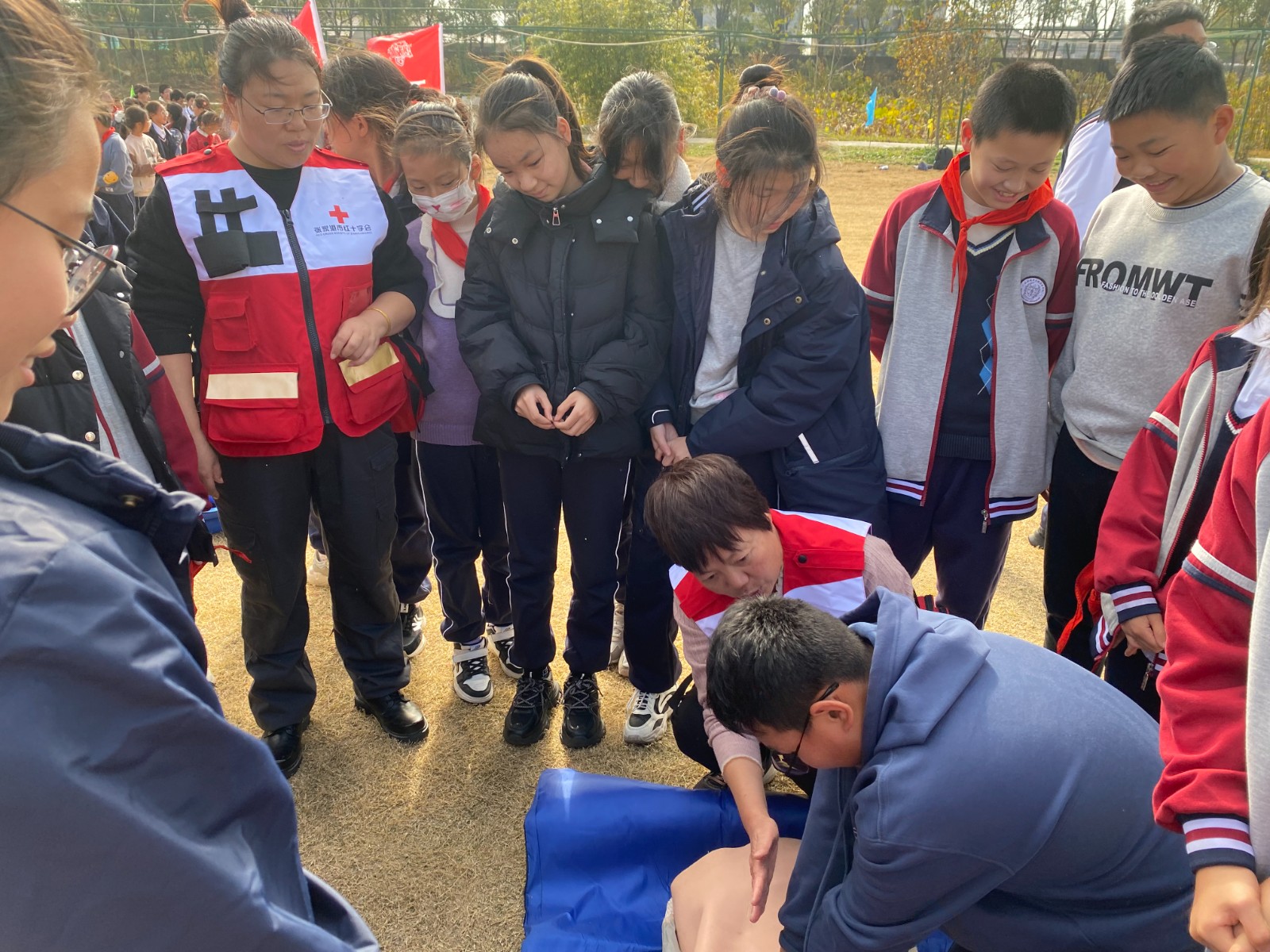 11月22日,张家港市红十字救援队应大新实验学校邀请,为学校的研学实践活动提供应急救援保障,并开展应急救护技能培训。