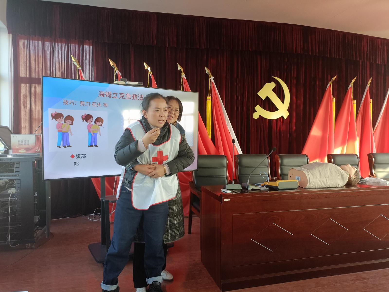 培训现场,县红十字会应急救护培训讲师通过理论讲解与实际操作相结合的方式,向社区老党员和群众代表系统地讲解了心肺复苏、除颤仪的使用以及气道异物梗阻等方面的急救知识和操作要点。在实际操作环节,参训人员积极演练,培训讲师指导参训人员对心肺复按压手势、位置和力度等不易掌握的操作要领都逐一手把手进行了指导纠正。