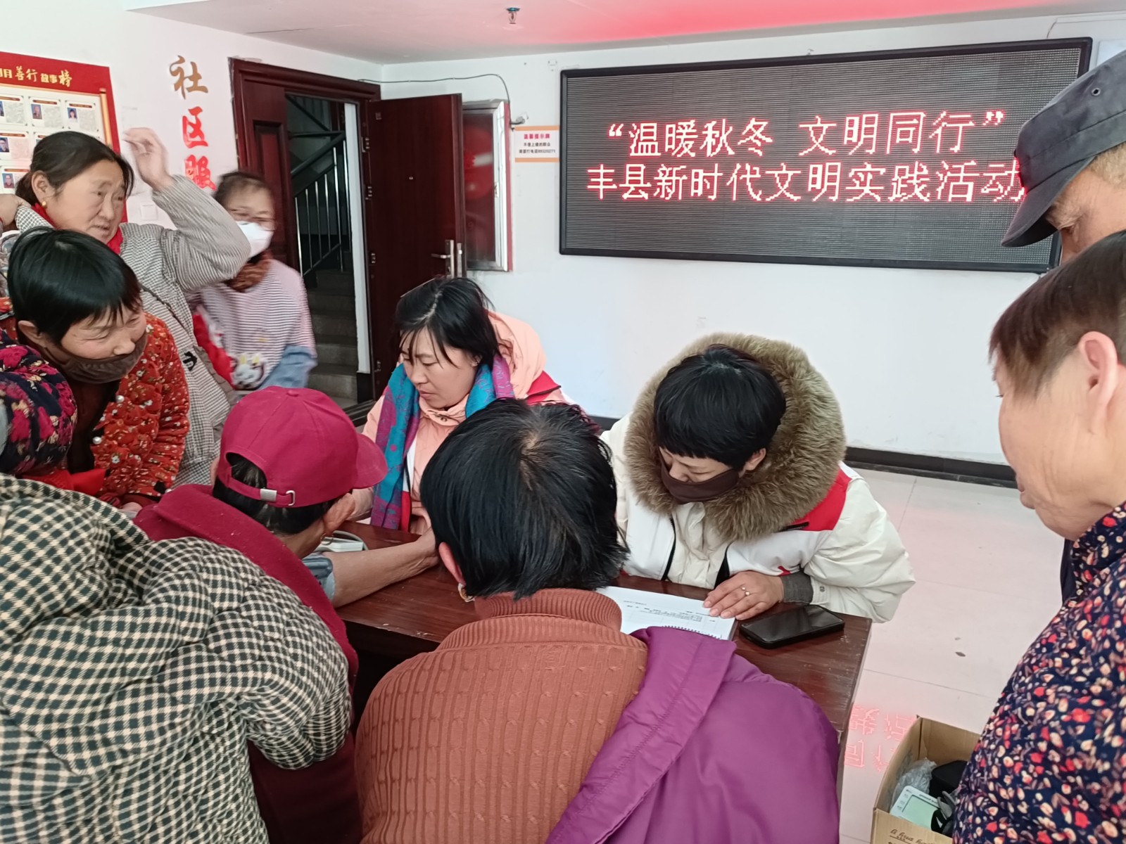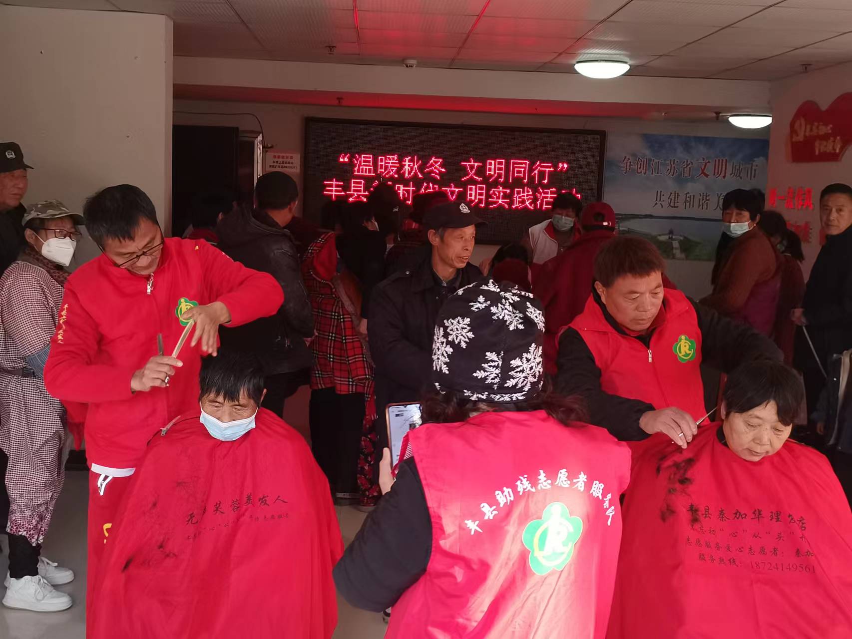 近日,丰县红十字养老照护志愿服务队的志愿者来到滨河社区开展义诊义剪志愿服务活动。