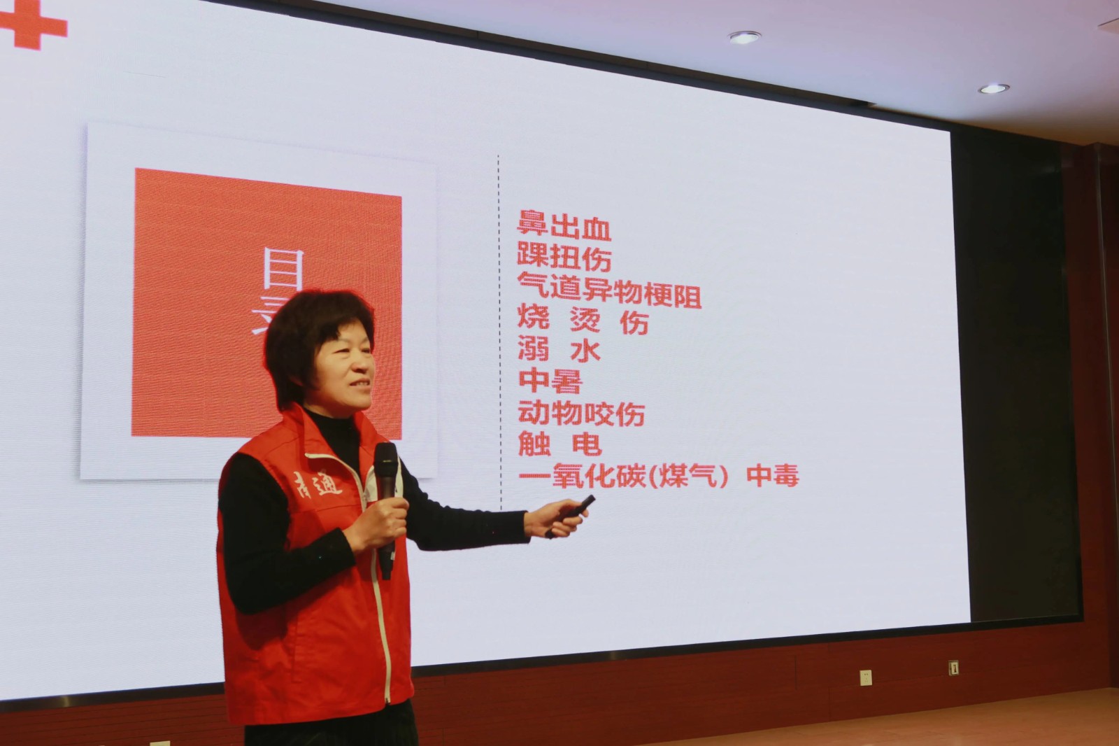讲座中,秦老师用理论知识、案例导入和动画视频辅助相结合的方式,深入浅出地围绕鼻出血、踝扭伤、气道异物梗阻、烧烫伤、溺水、中暑、动物咬伤等基本救护知识技能进行了生动的讲解,并对急救操作过程中的注意事项进行重点强调。
